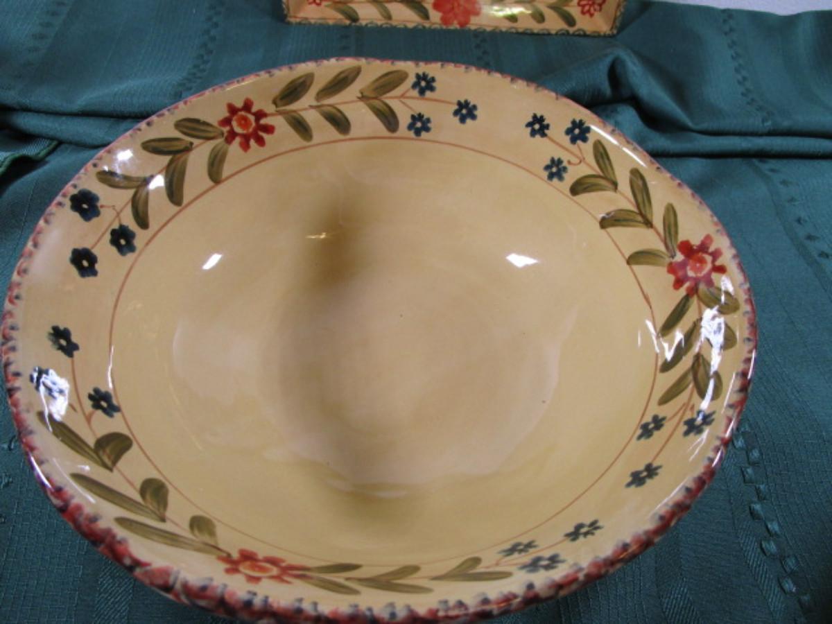 New, 4 bowls-8-1/4" in diameter x 2-1/4" deep, 1 serving bowl - 10" in diameter x 4-1/4" deep, 1 tray - 11" x 8-3/4"