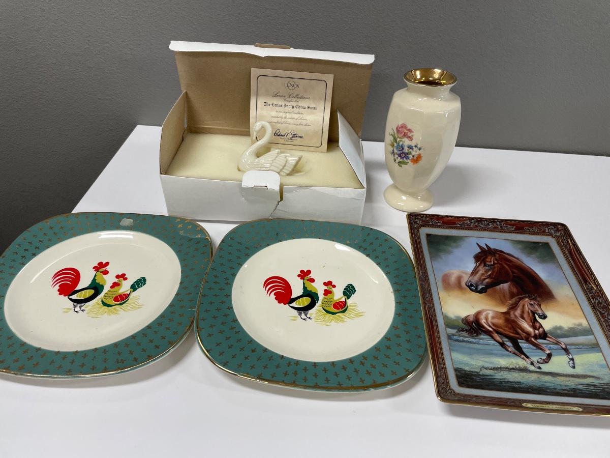 Rooster & horse pics, vase and swan