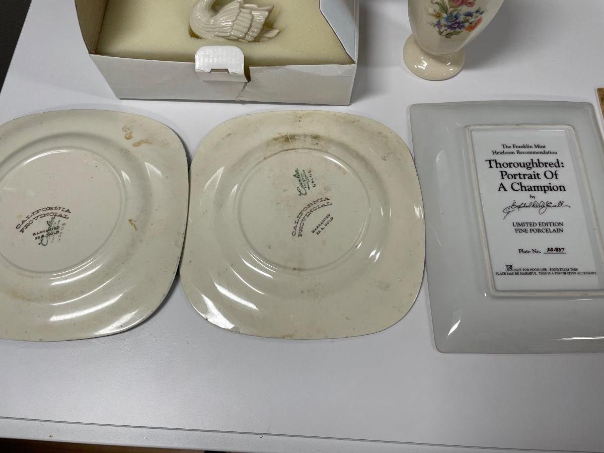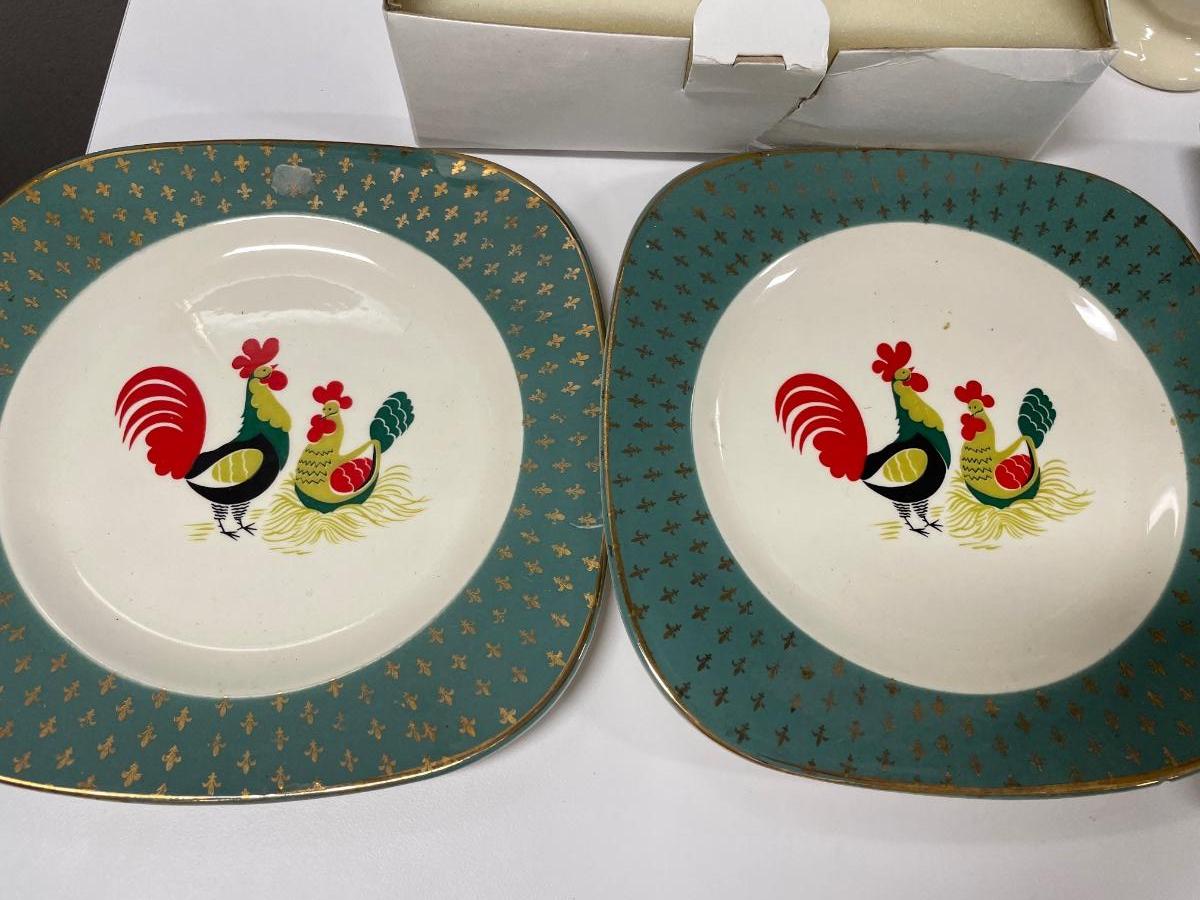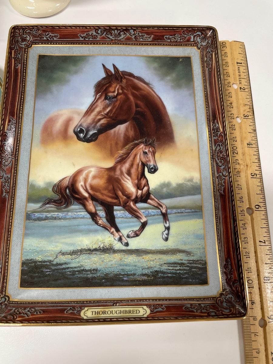2 California rooster pics and Franklin Mint horse plate