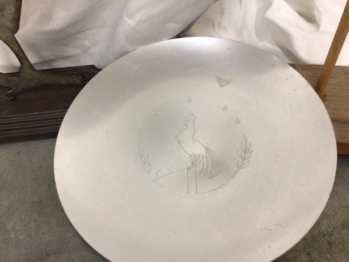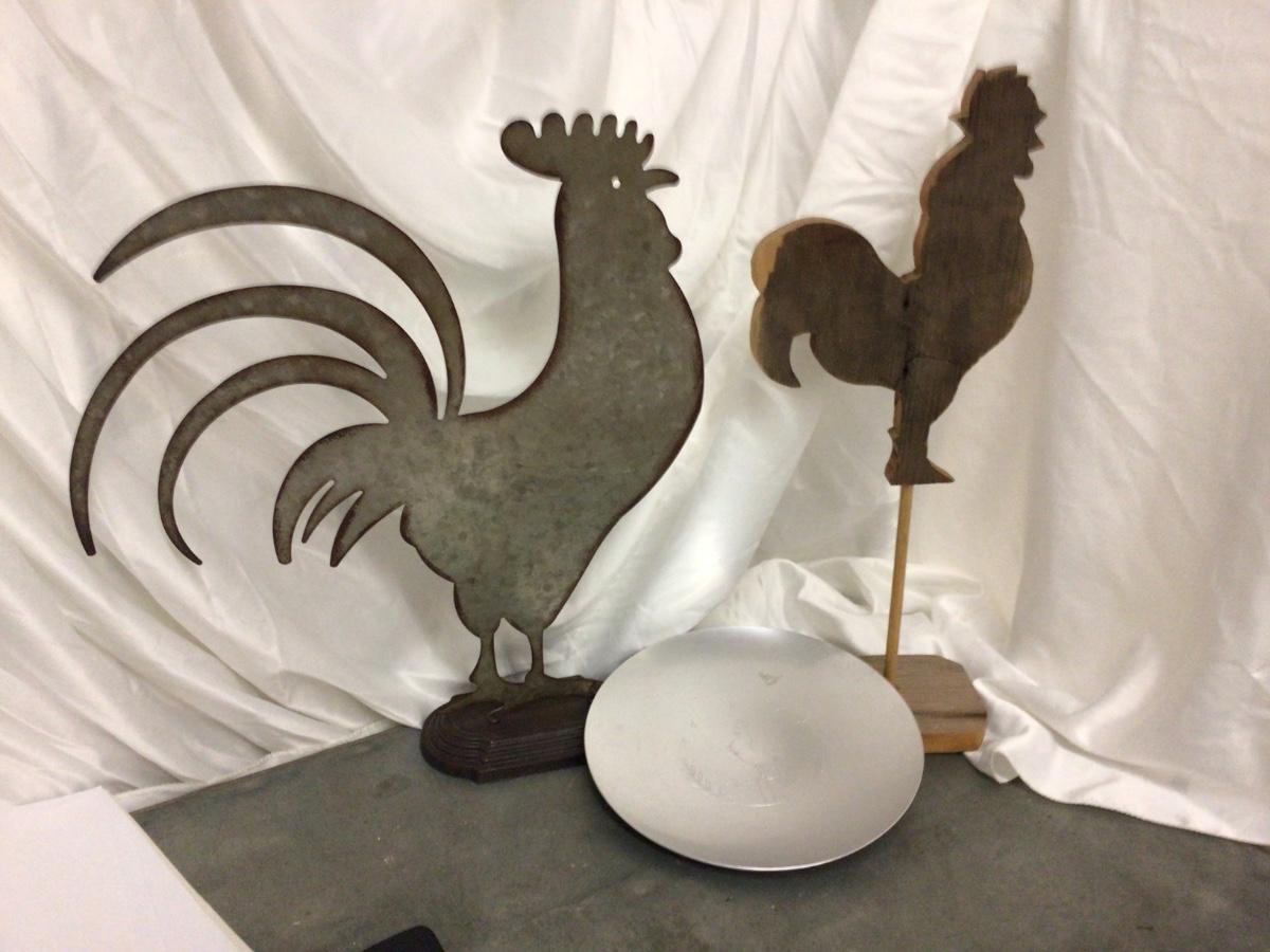 You get Wood rooster, metal rooster, and rooster plate