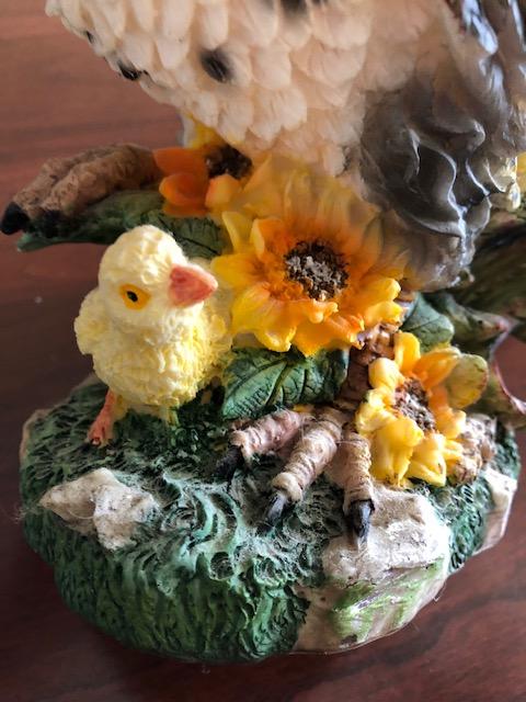 9 1/4” X 6” Resin Statue of Rooster and a chick