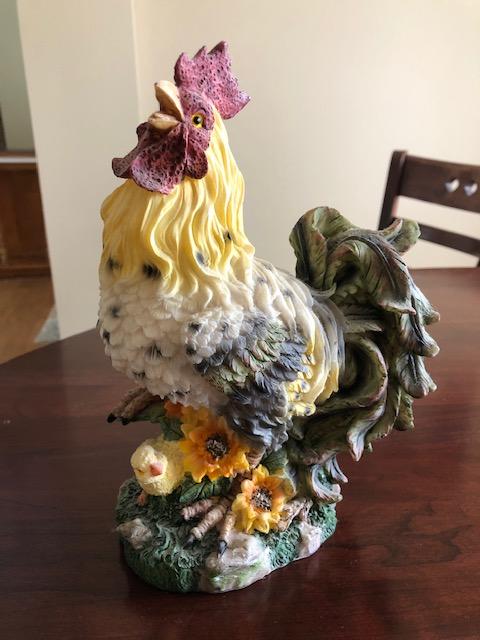 9 1/4” X 6” Resin Statue of Rooster and a chick