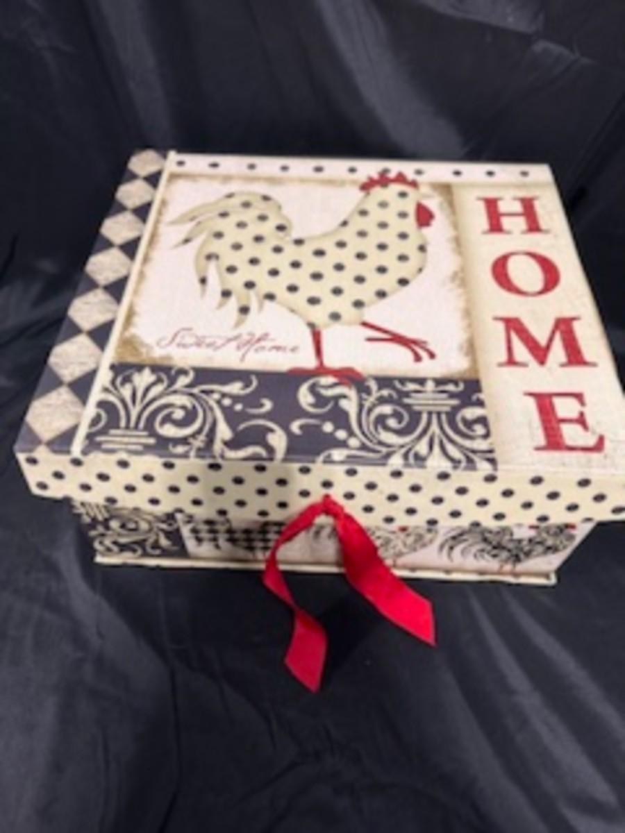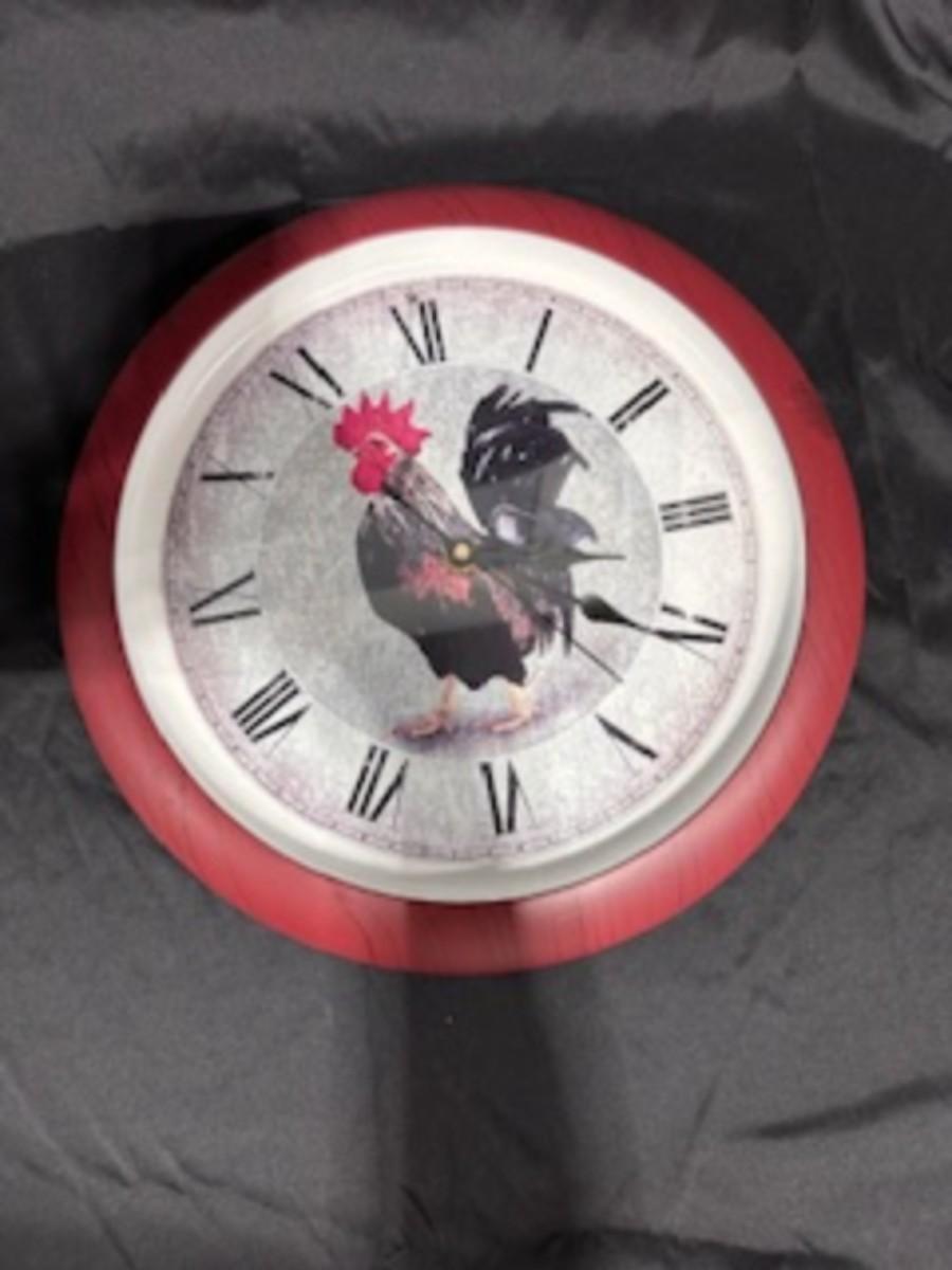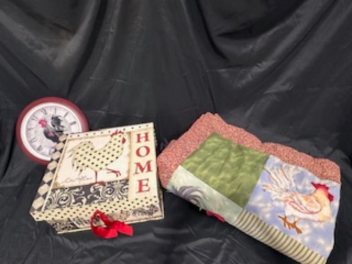 ROOSTER WALL CLOCK, BOX AND QUILT