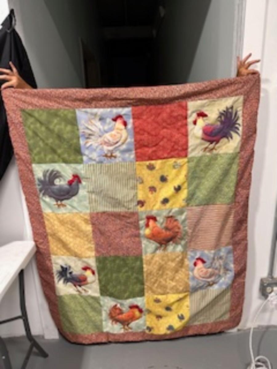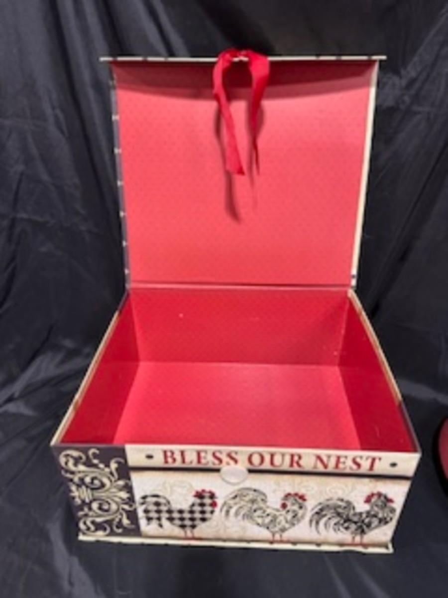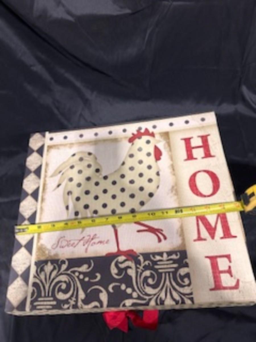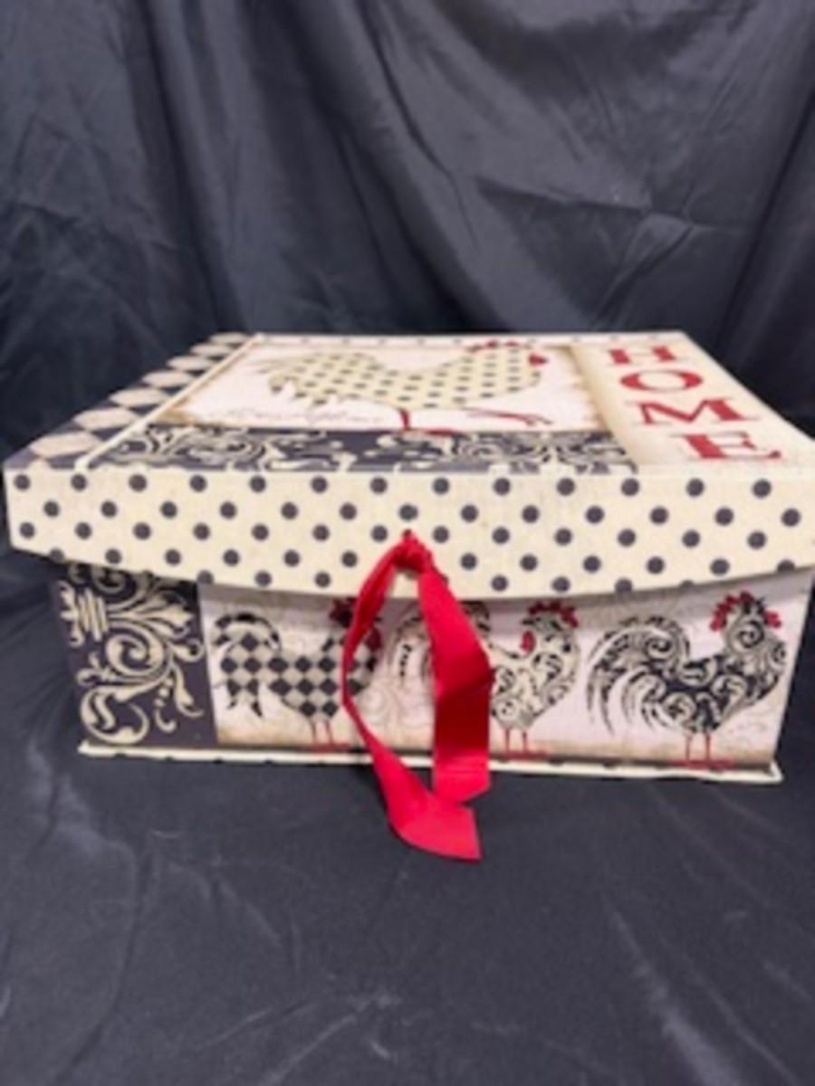 ROOSTER WALL CLOCK, BOX AND QUILT