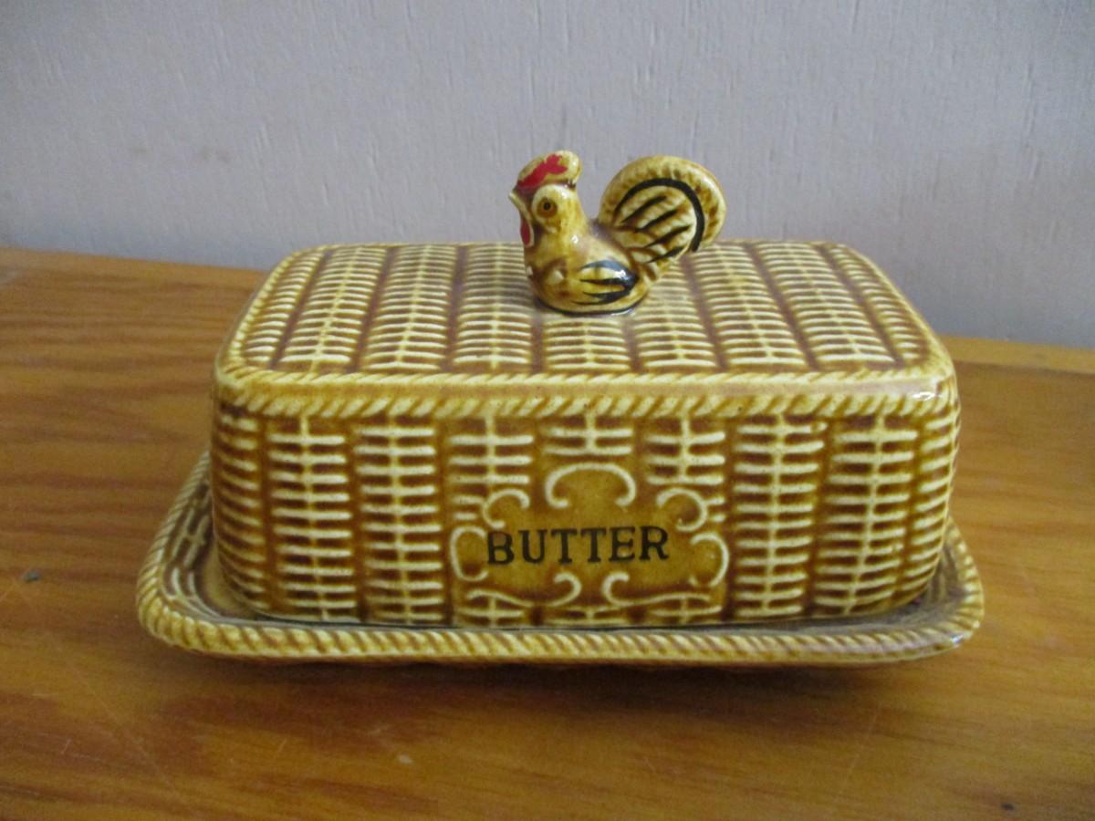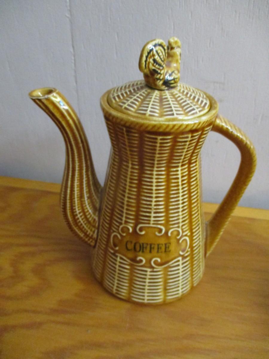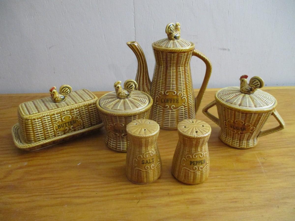 Vintage Rooster Finial Ceramic Wicker Basket Design Tea Set - D