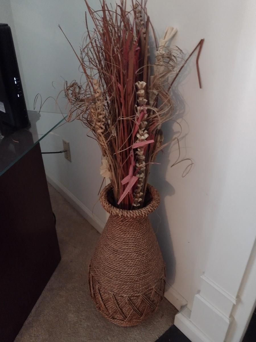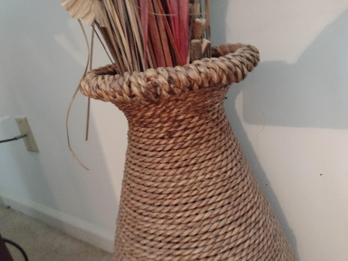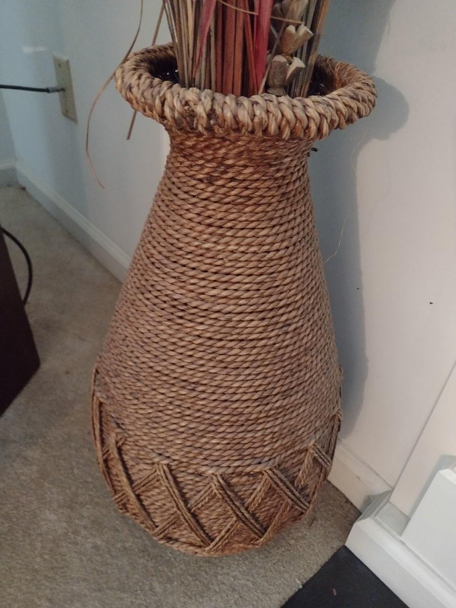 Rope Weave Floor Vase with Artificial Plant