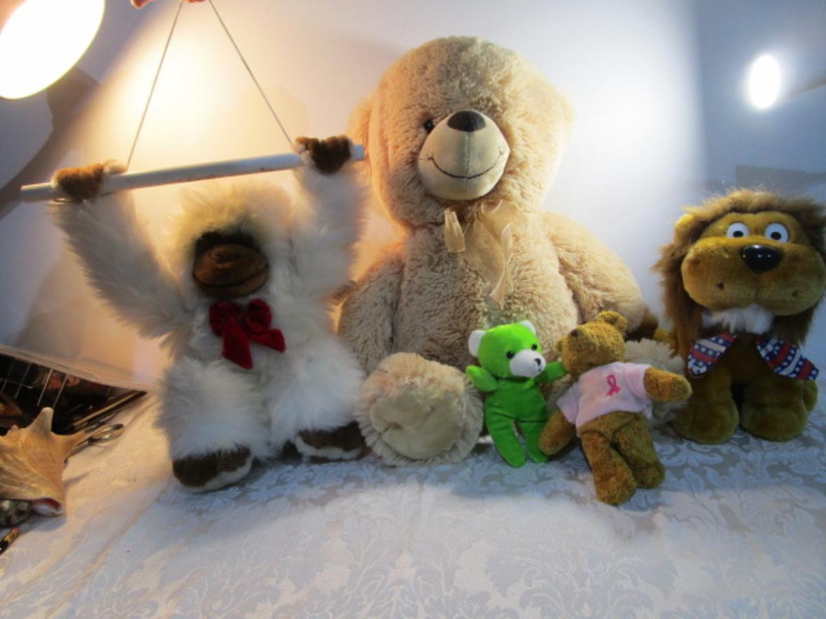 Rory the Lion talks & sings, 3 stuffed bears, 1 hanging monkey