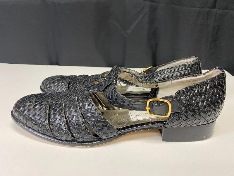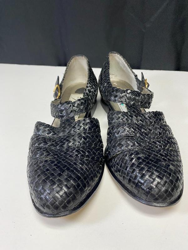Ros Hommerson black woven style sandal. Size 9S. Low heel. Previously worn.