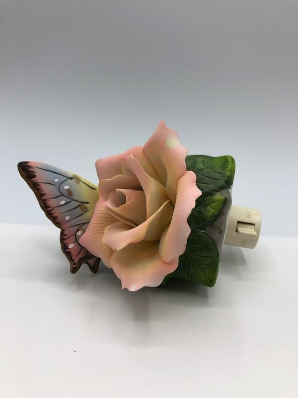 Rose and Butterfly Night Light. On/off switch.