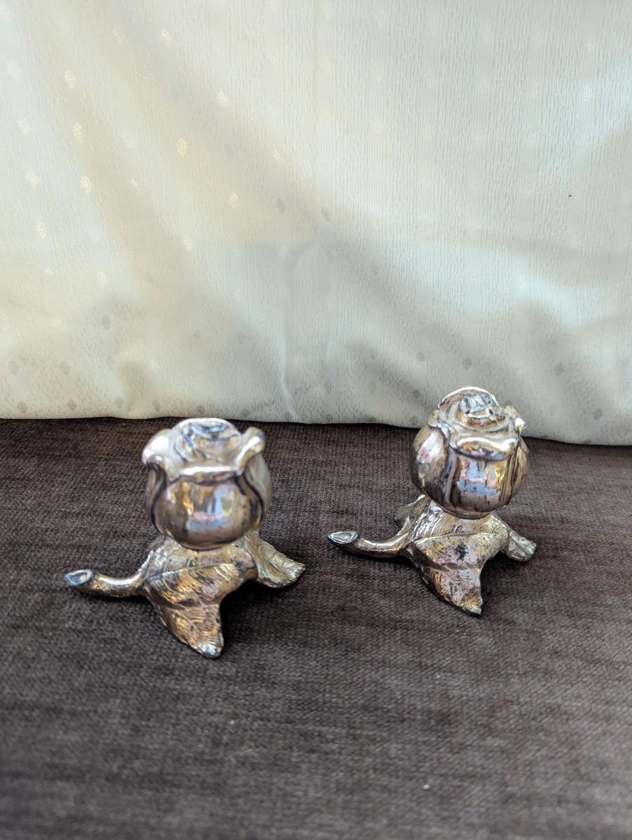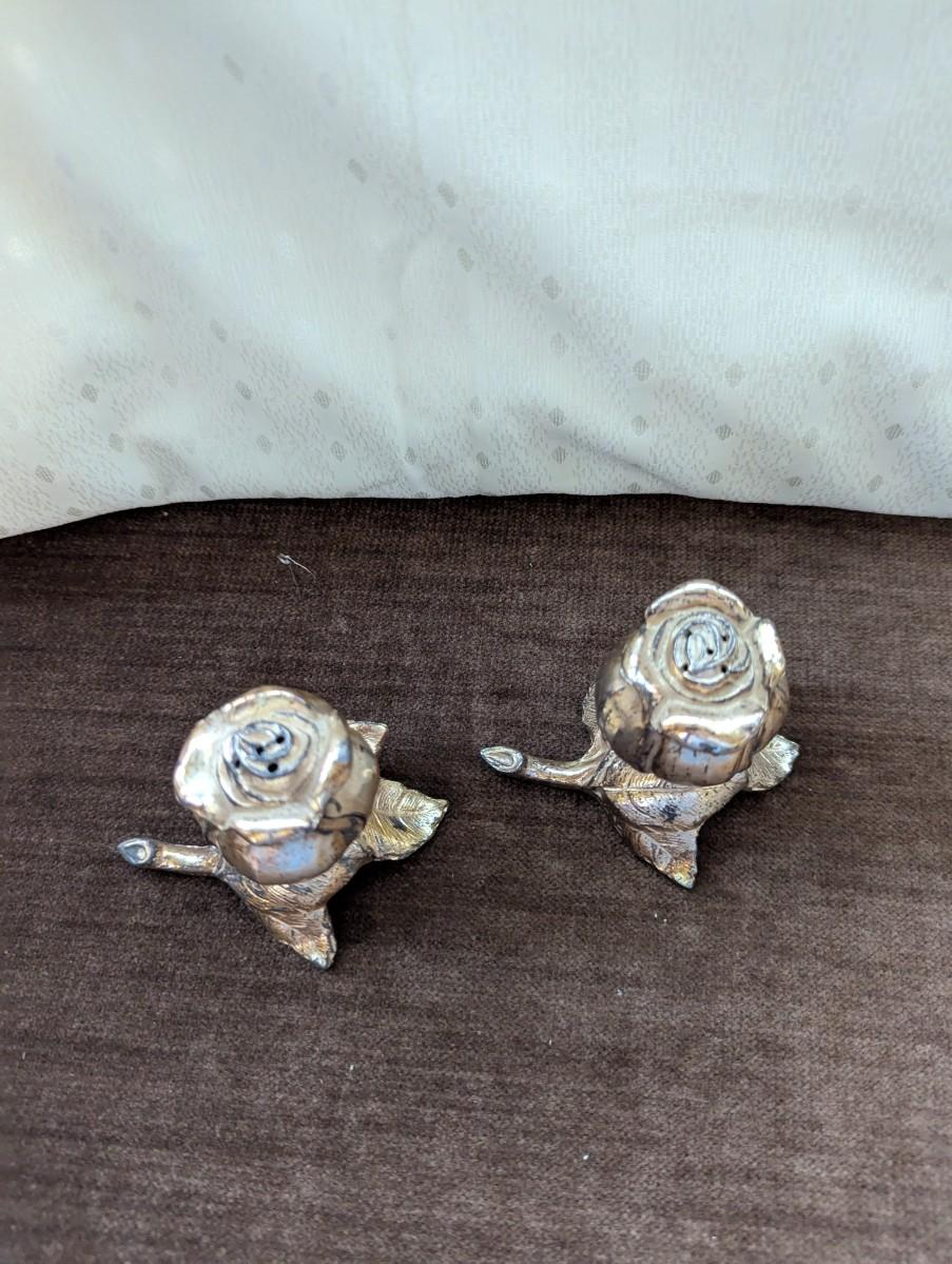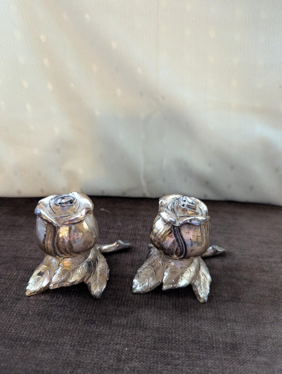 Antique Silver Plated Rose Salt and Pepper Shakers.