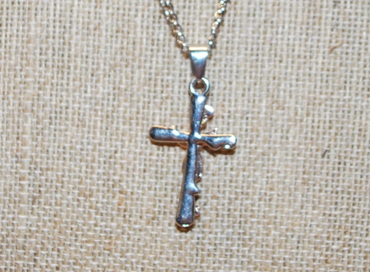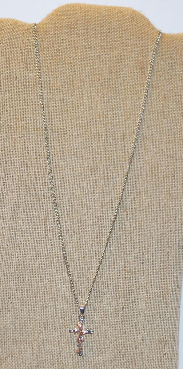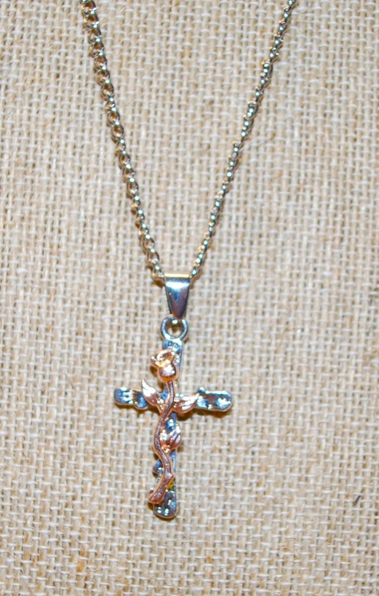 Rose Gold Colored "Rose on Cross" Pendant Necklace 24" L
