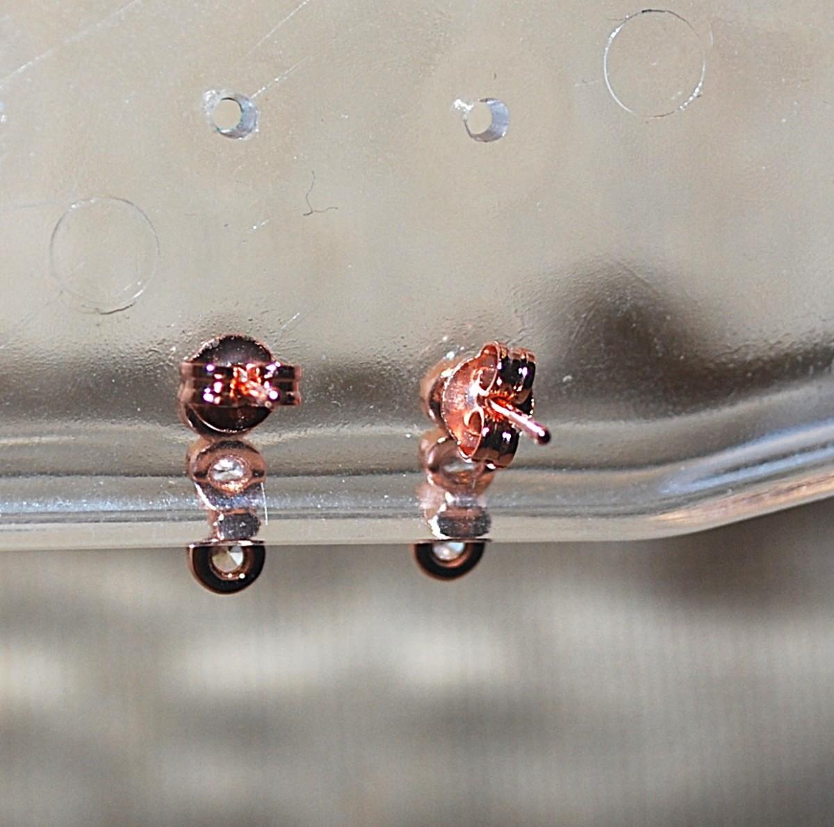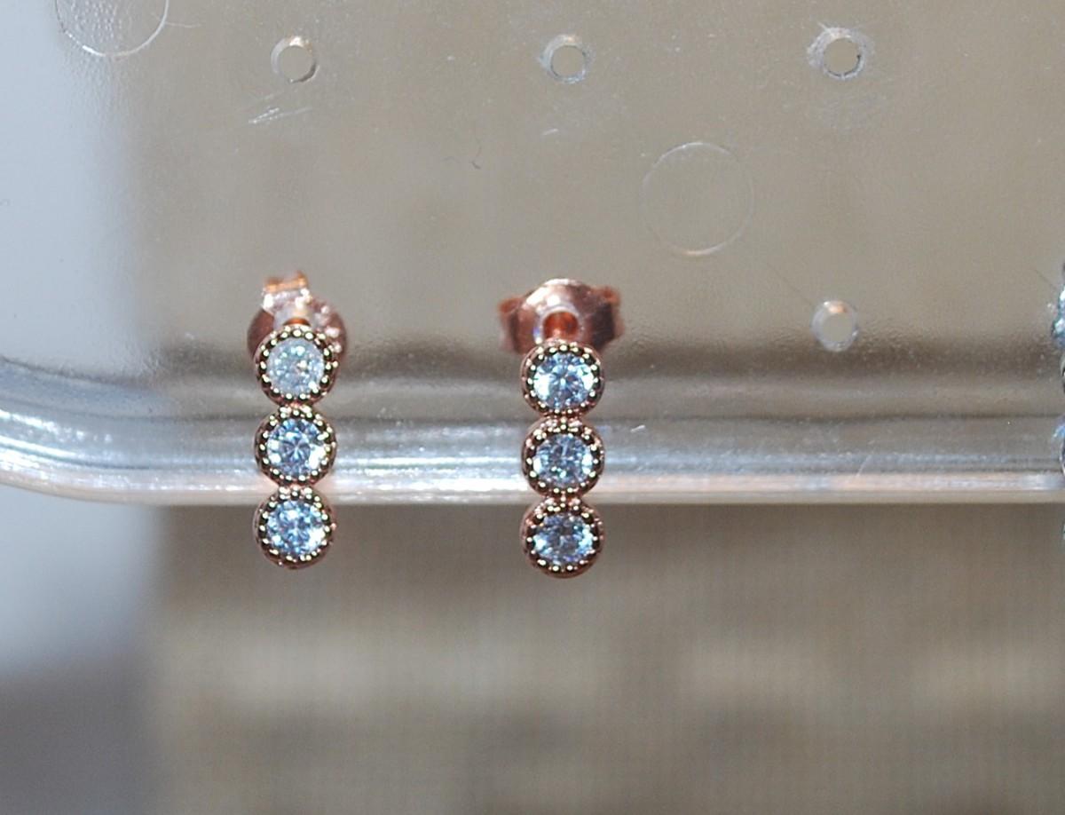 Rose Gold Setting Earrings (½") with 3 Round Clear Stones on a Stud Clasp