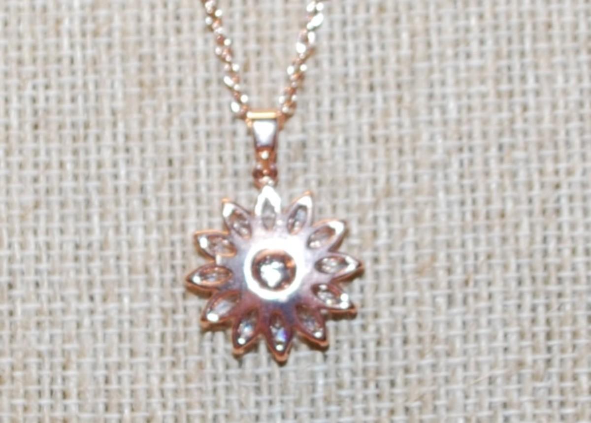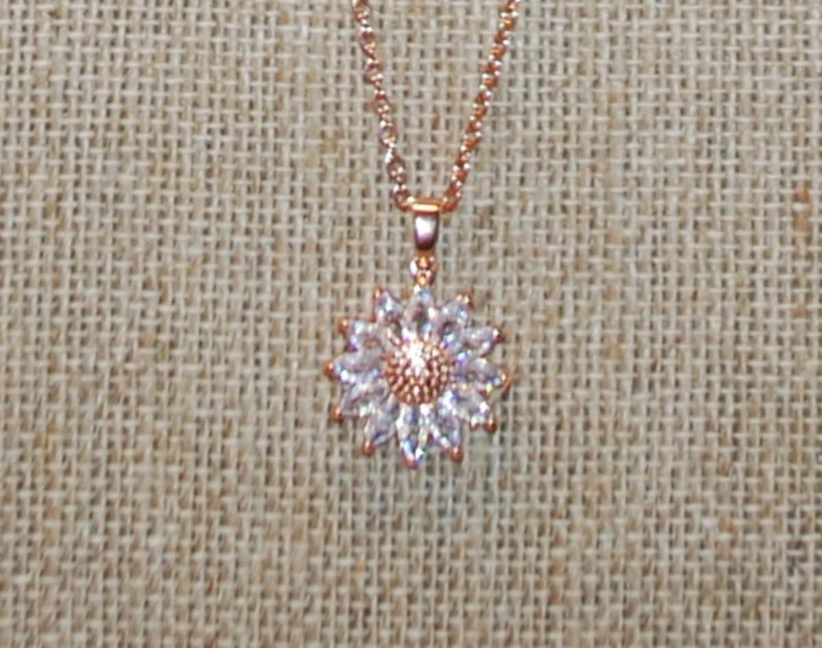 Rose Gold Sunflower PENDANT (¾" x ¾") on a Rose Gold Necklace Chain 20" L