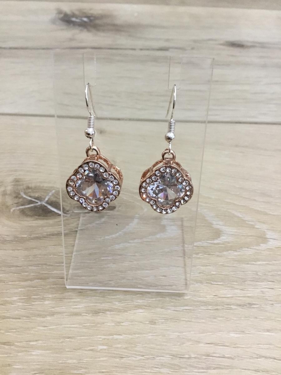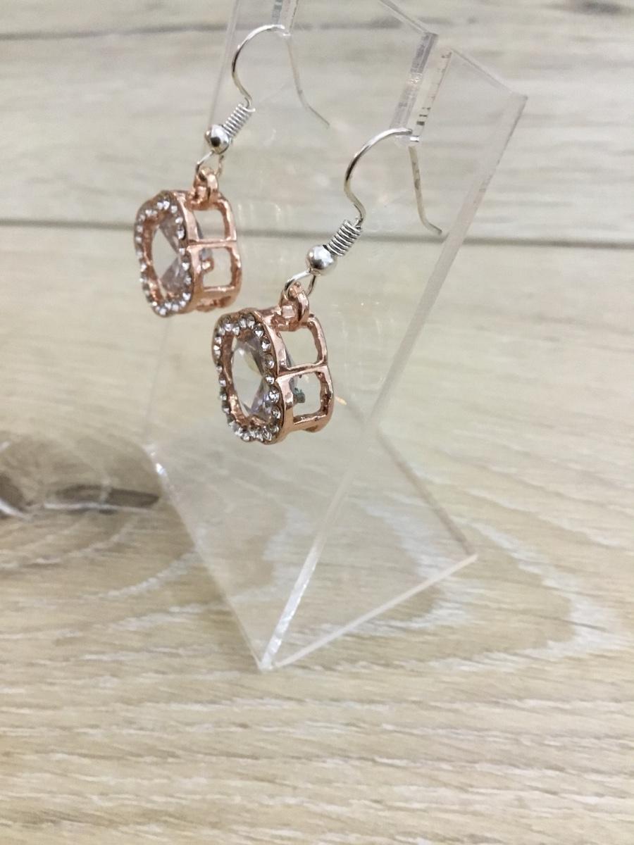 Rose, gold, toned, clear, rhinestone earrings