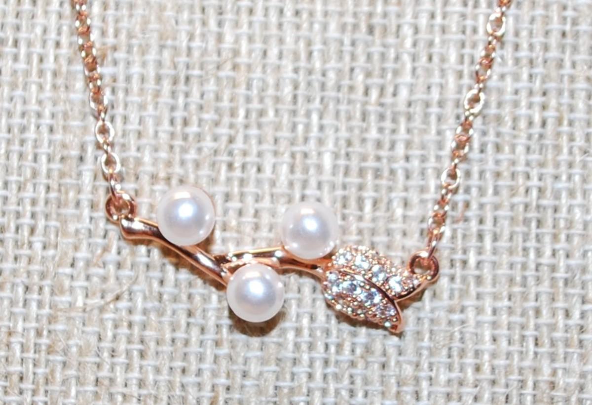 Rose Gold "White Pearls & Tulip" PENDANT (1" x ½") on a Rose Gold Necklace Chain 16" L