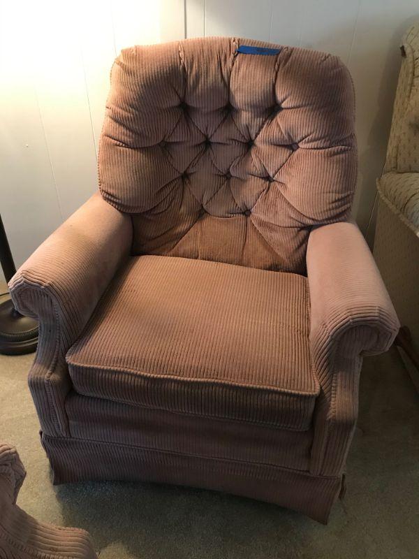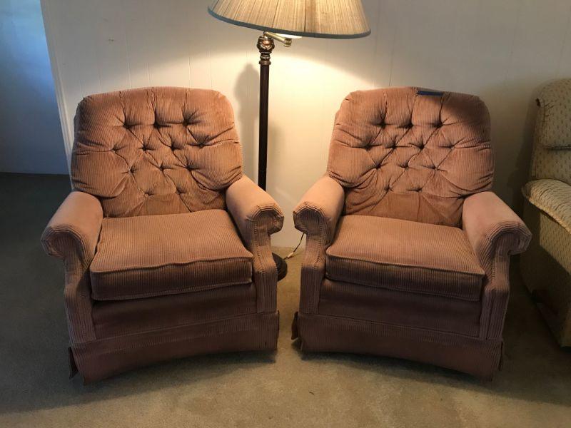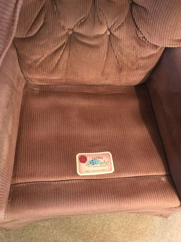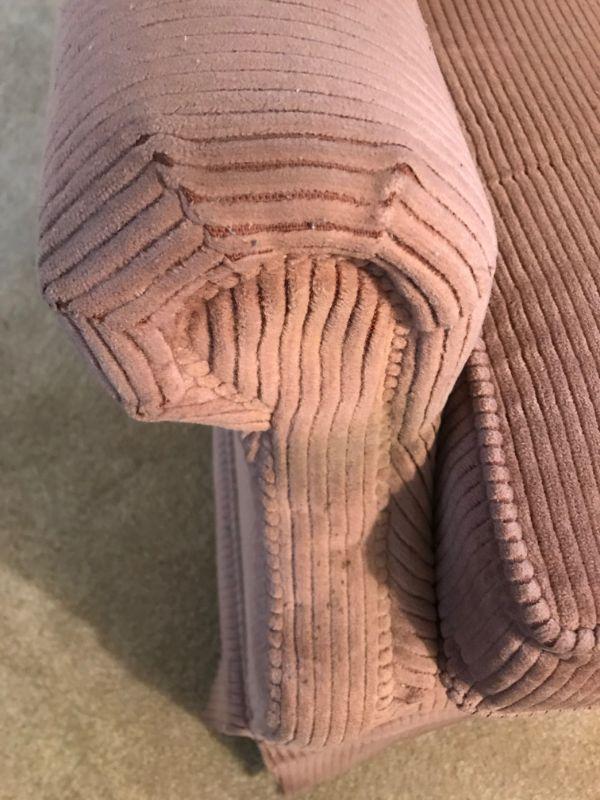 No rips or tears, just normal wear around the arm/hand and seat cushion areas.