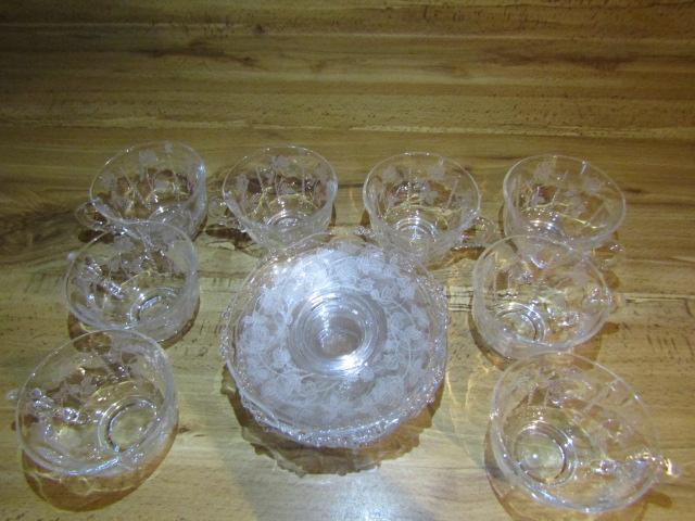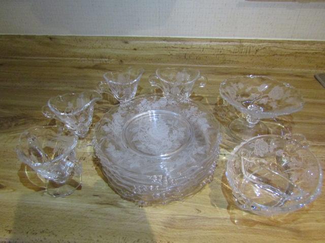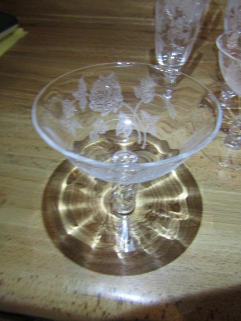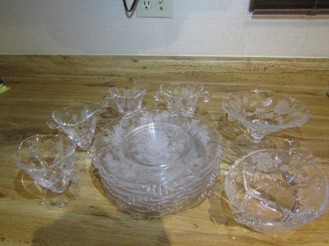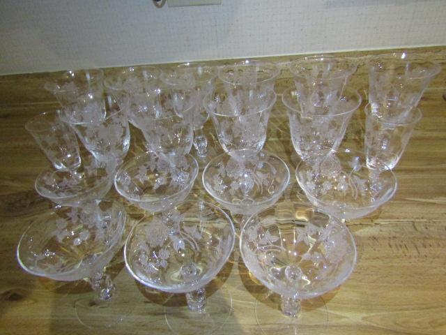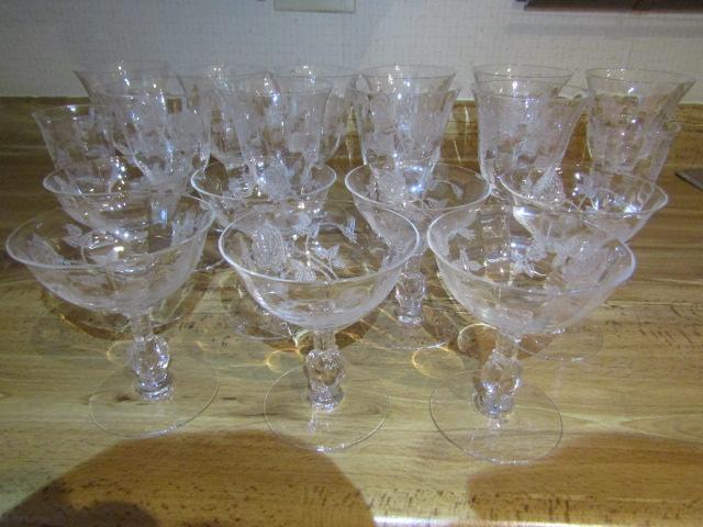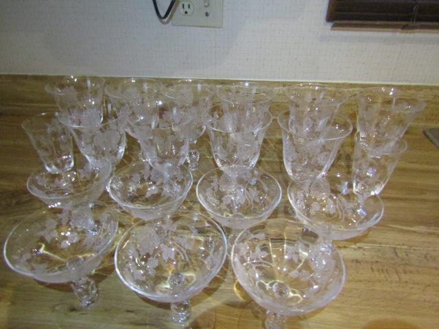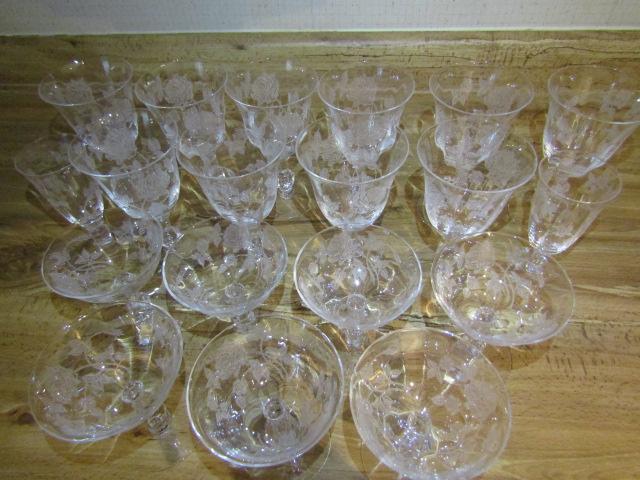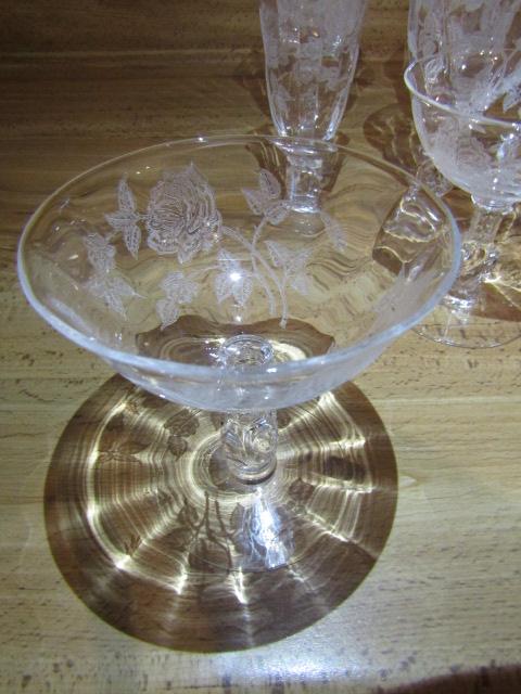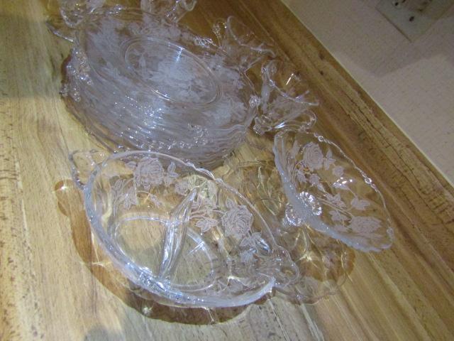 Rose Pattern Crystal Entertainment Set with Serving Plates, Wine and Liquer Glasses, Etc.