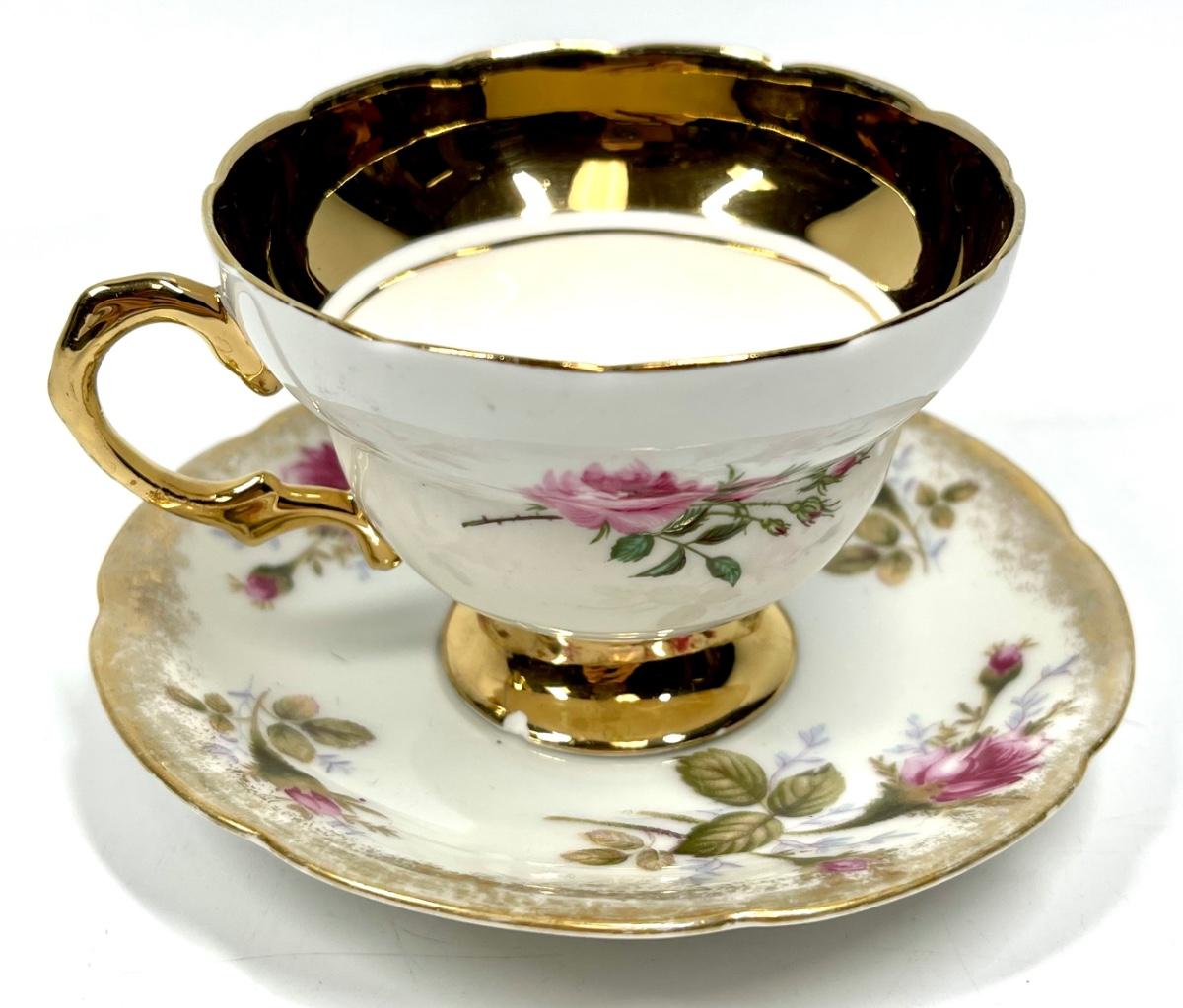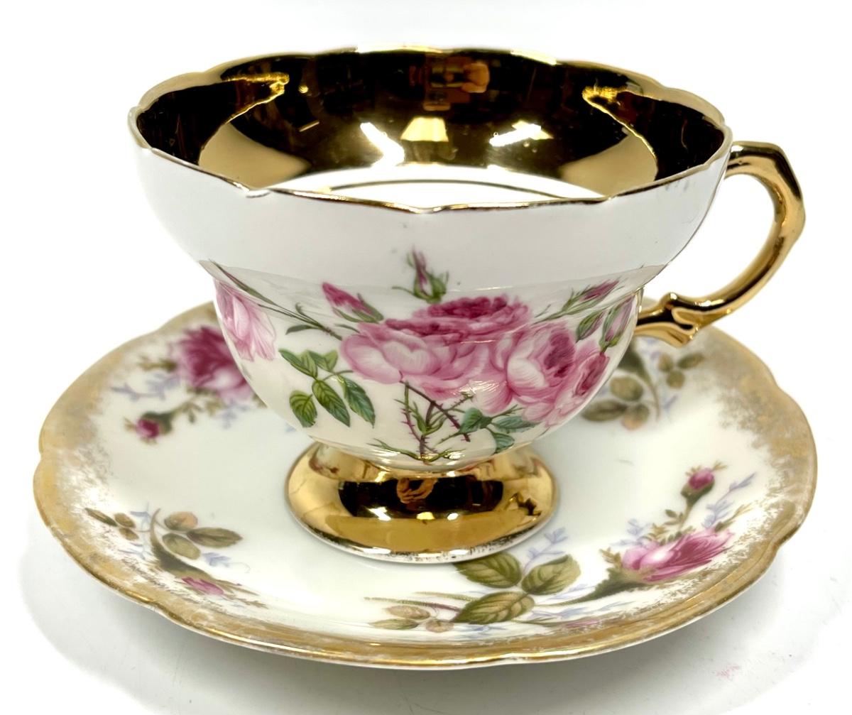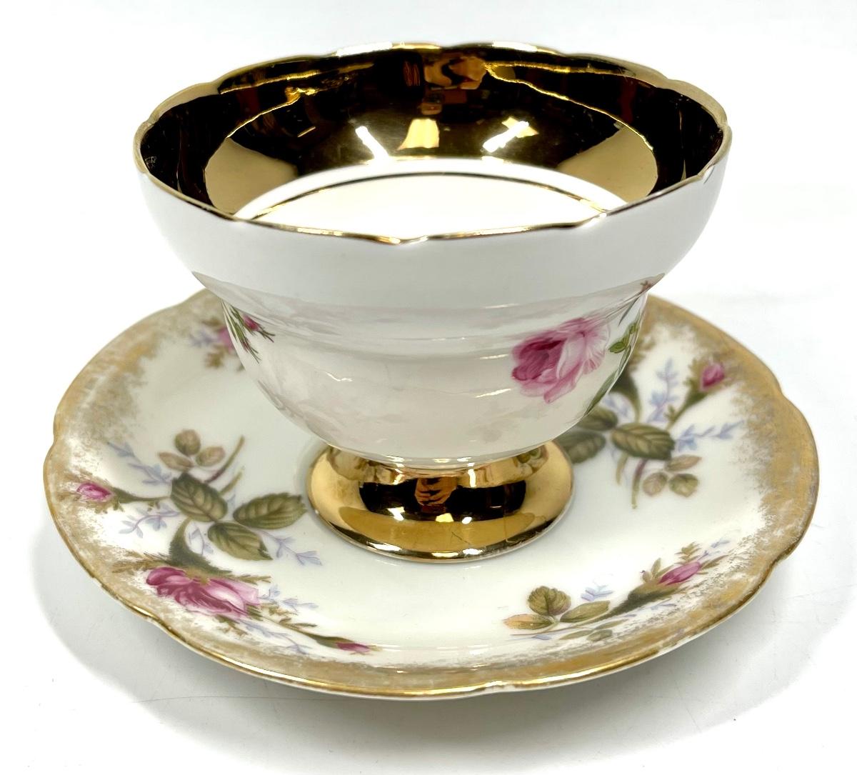 Rose Patterned Gold Rimmed Tea cup and saucer Rosina Made in England