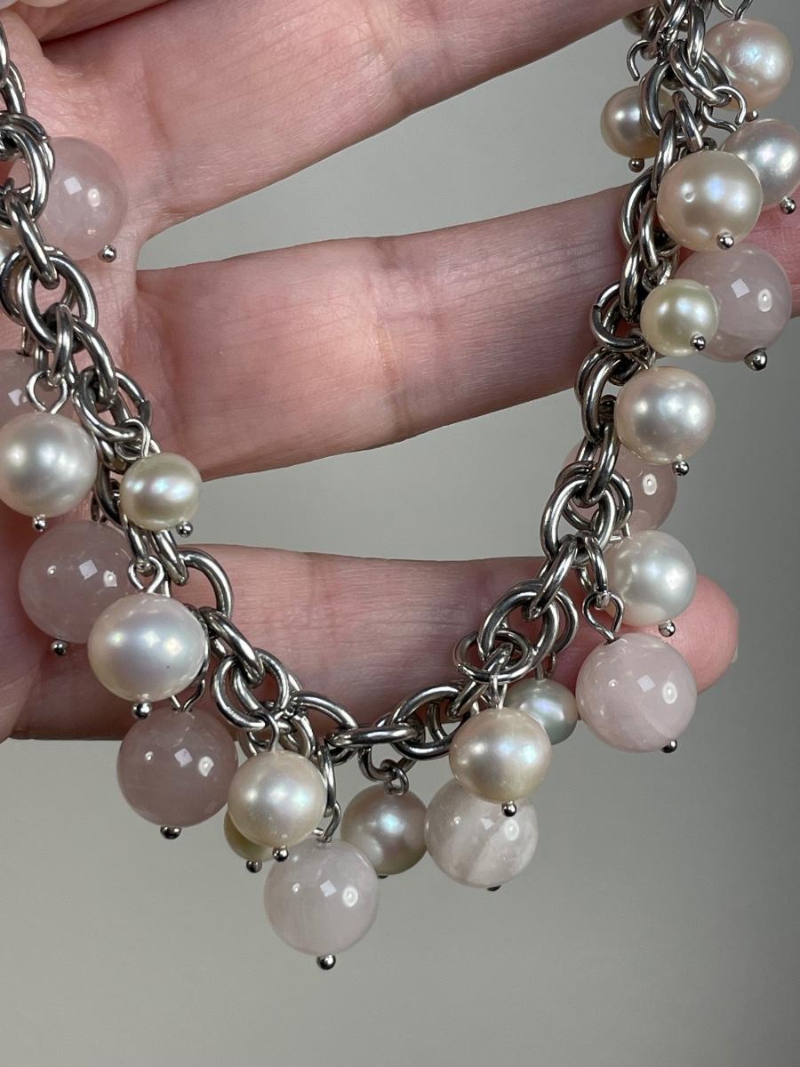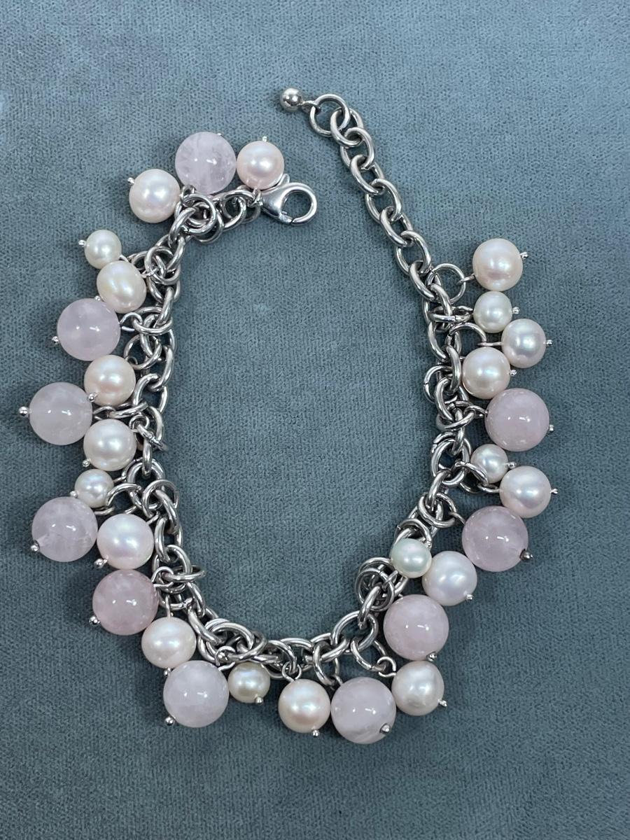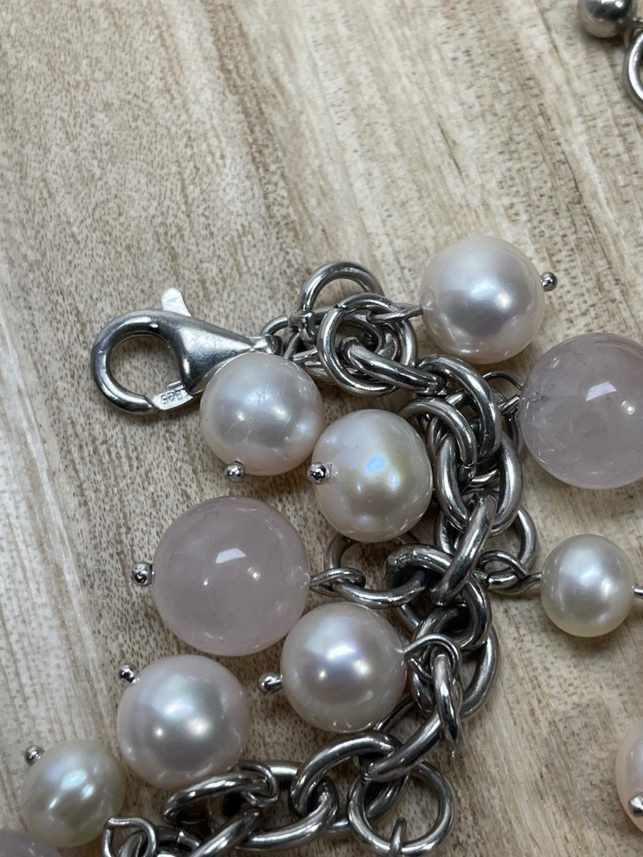 Rose Quartz and Pearl Sterling Silver Bracelet