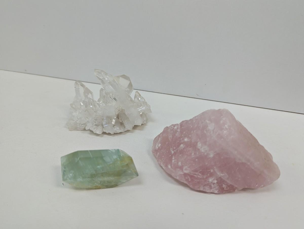 Rose Quartz Aquamarine Clear Quartz Cluster