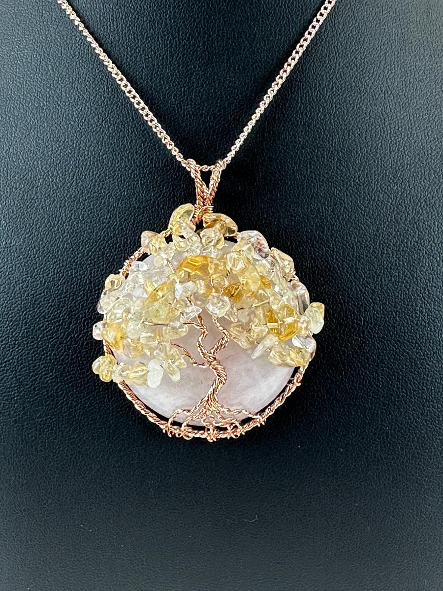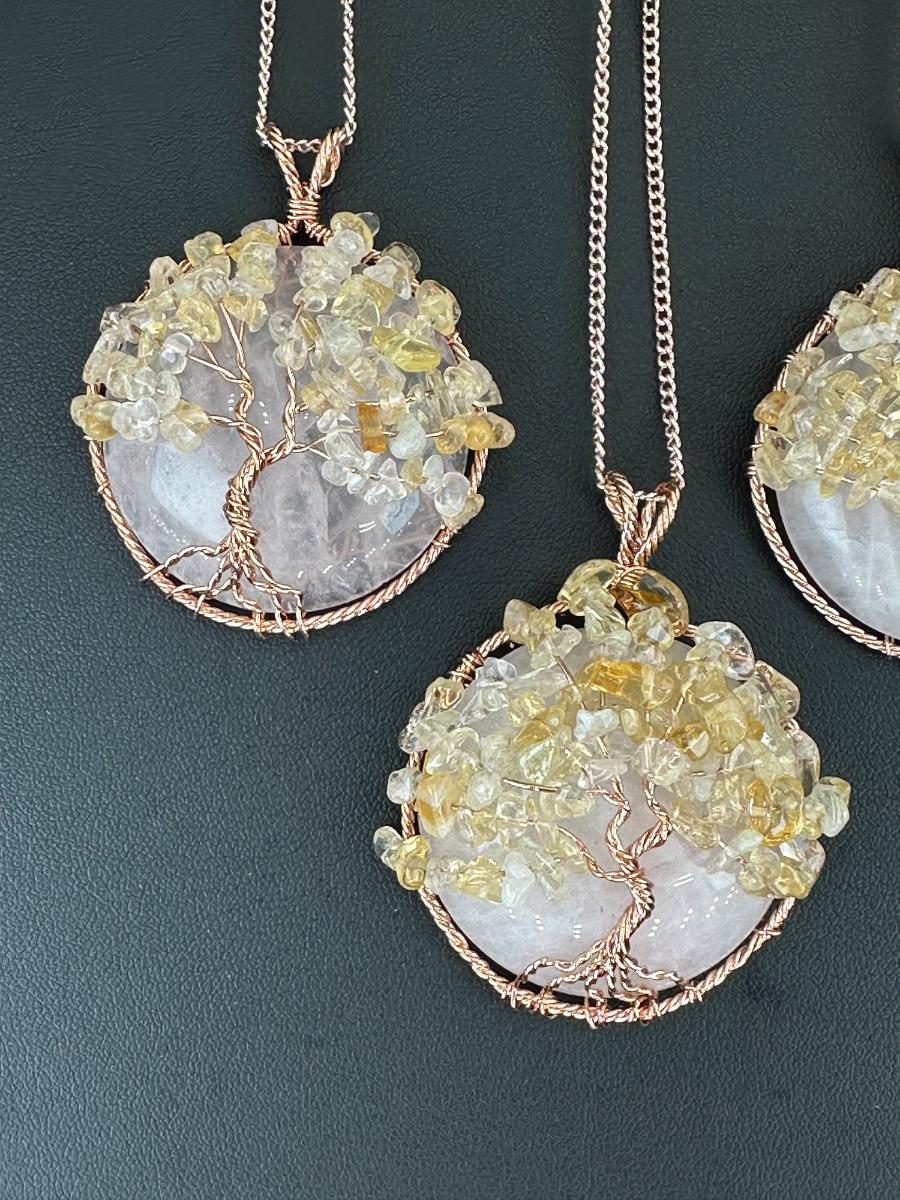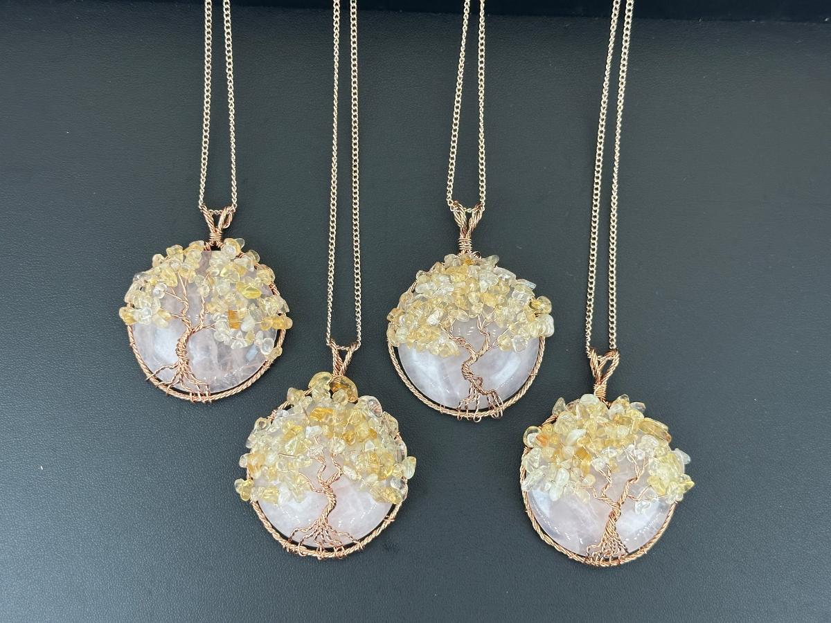 1. Rose Quartz Mix Gemstone Tree Of Life Necklace Lot