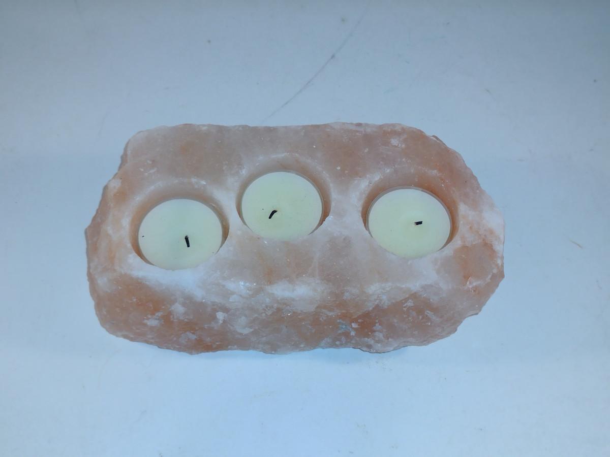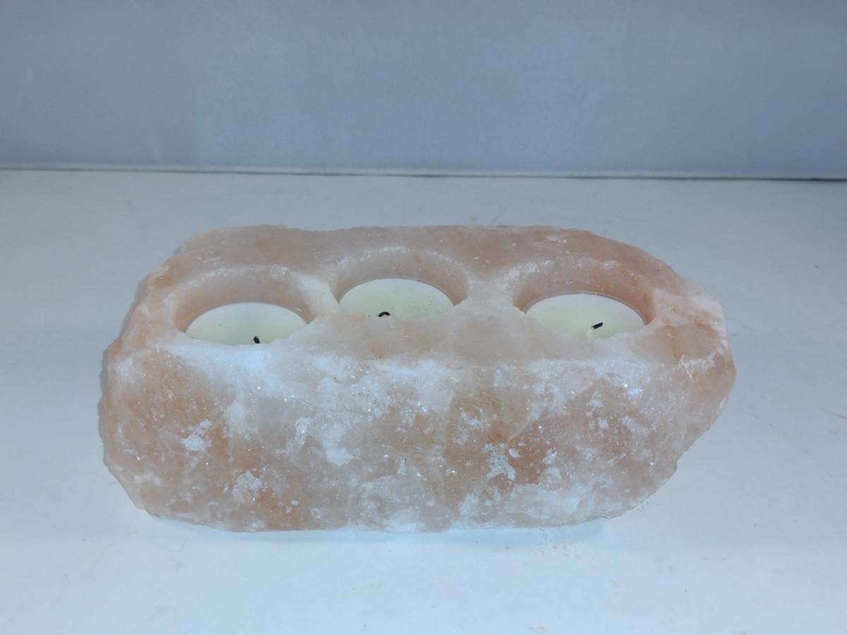 Rose Quartz Tea Light Candle Holder- Three Cavity- Approx 7" x 4"
