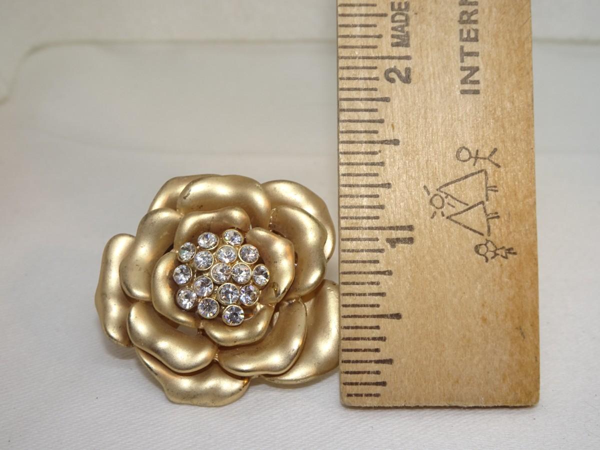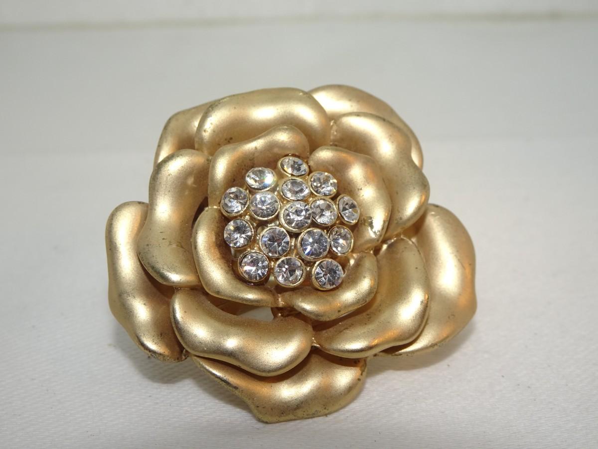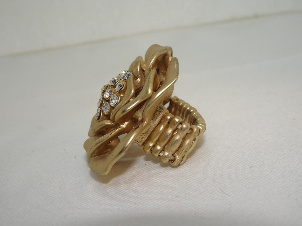 Rose & Rhinestone Gold Tone Stretch Ring