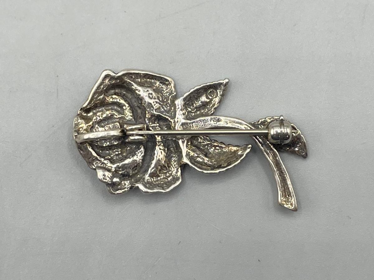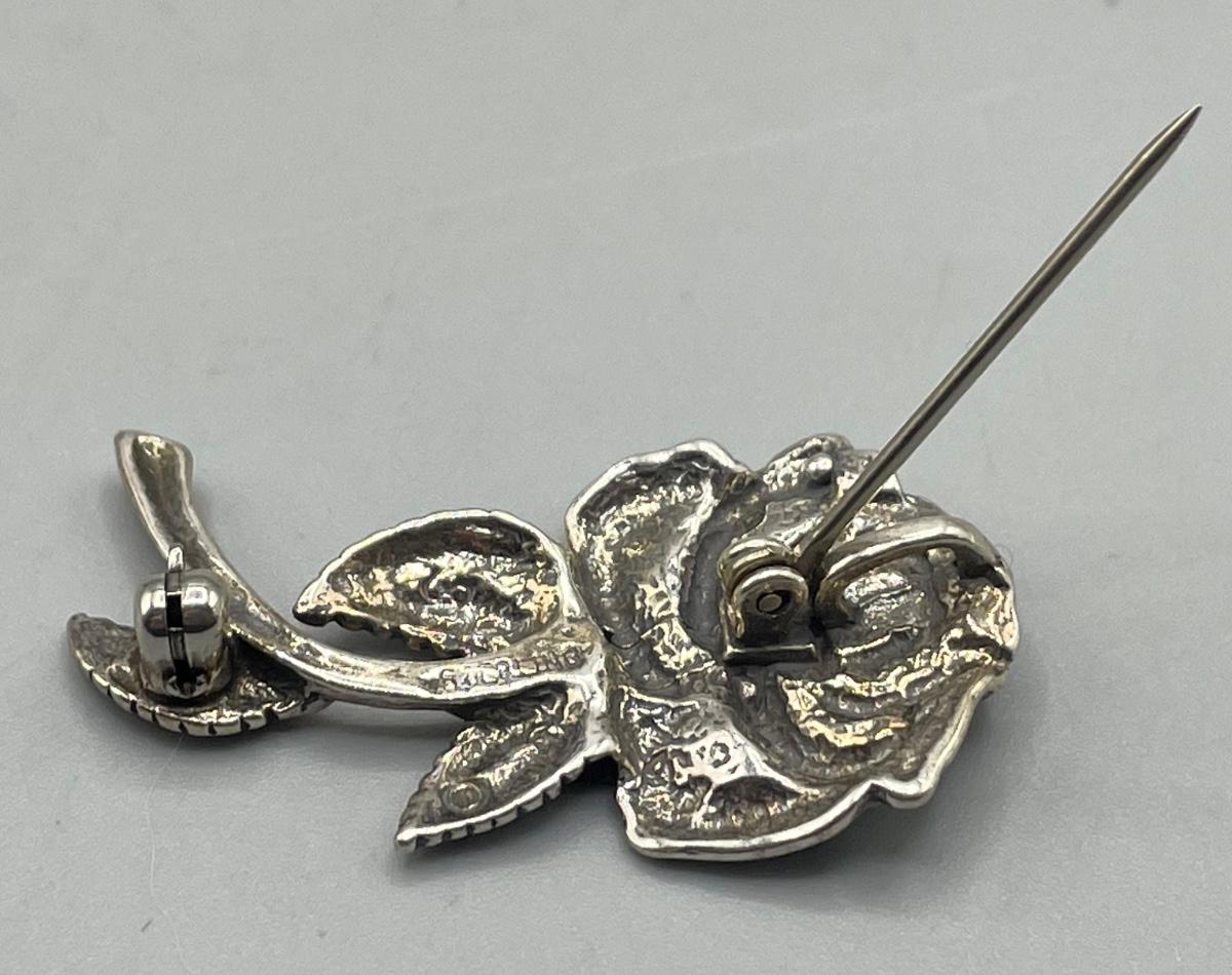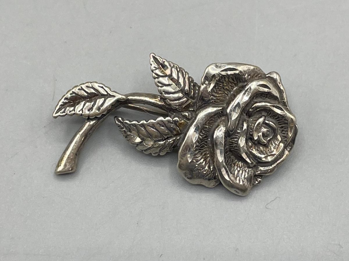 Vintage Sterling Silver Rose Flower Pin Brooch