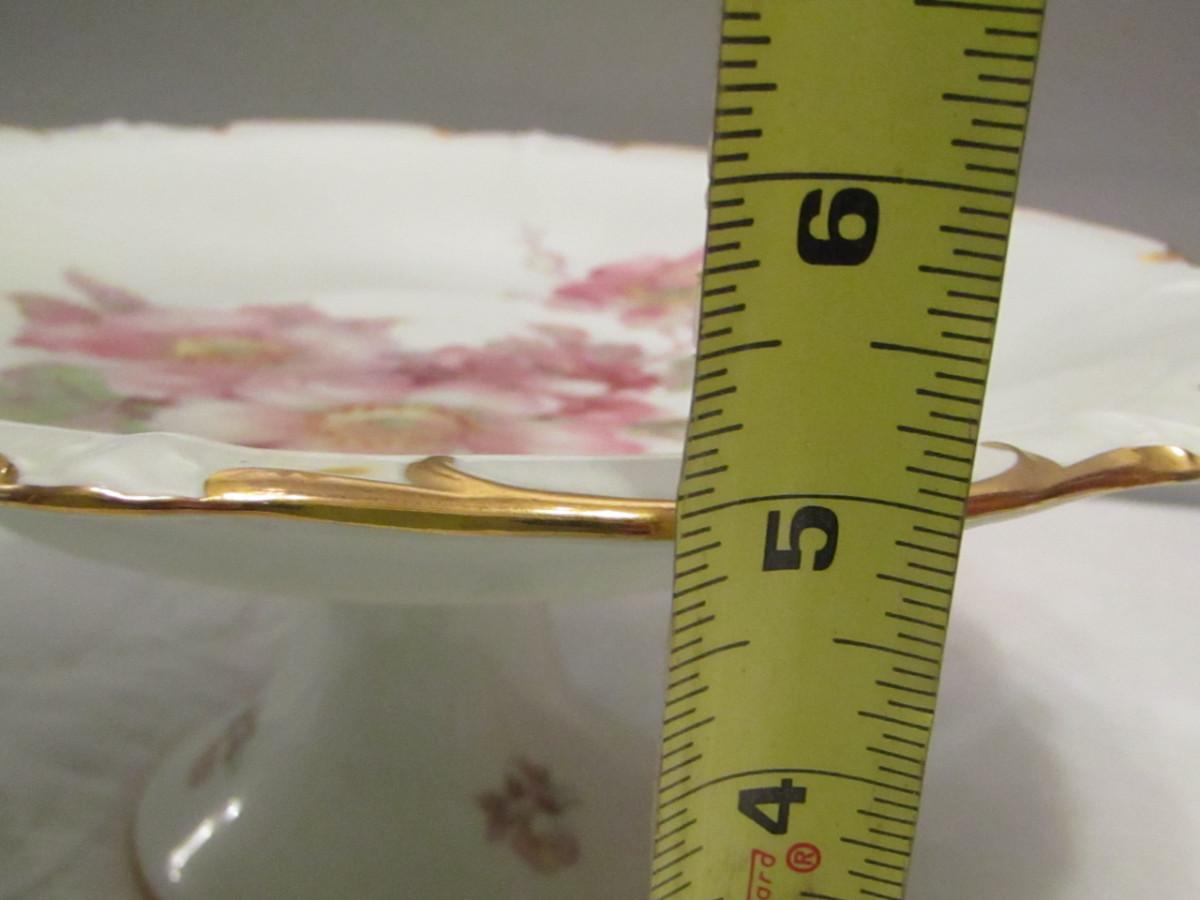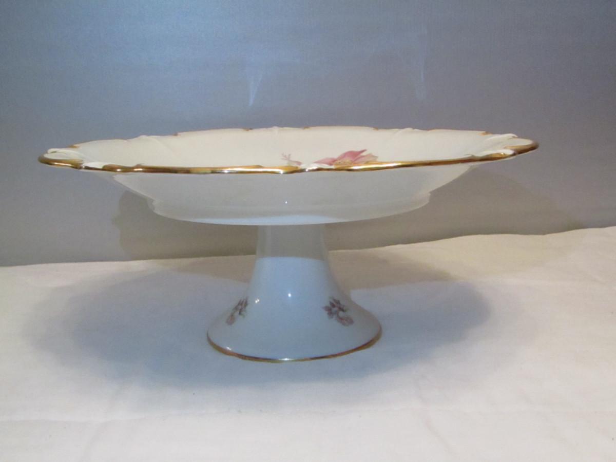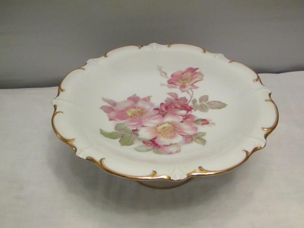 Antique Schumann Arzberg Wild Rose Pedestal Dish with Gilded Edging