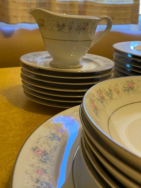 Vintage "M" Fine China Rosemary Blue & Pink Floral Dishware