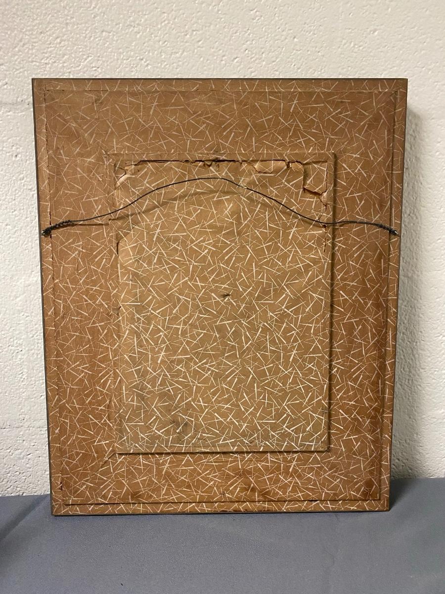 Some staining on burlap border and on artwork and some rippling