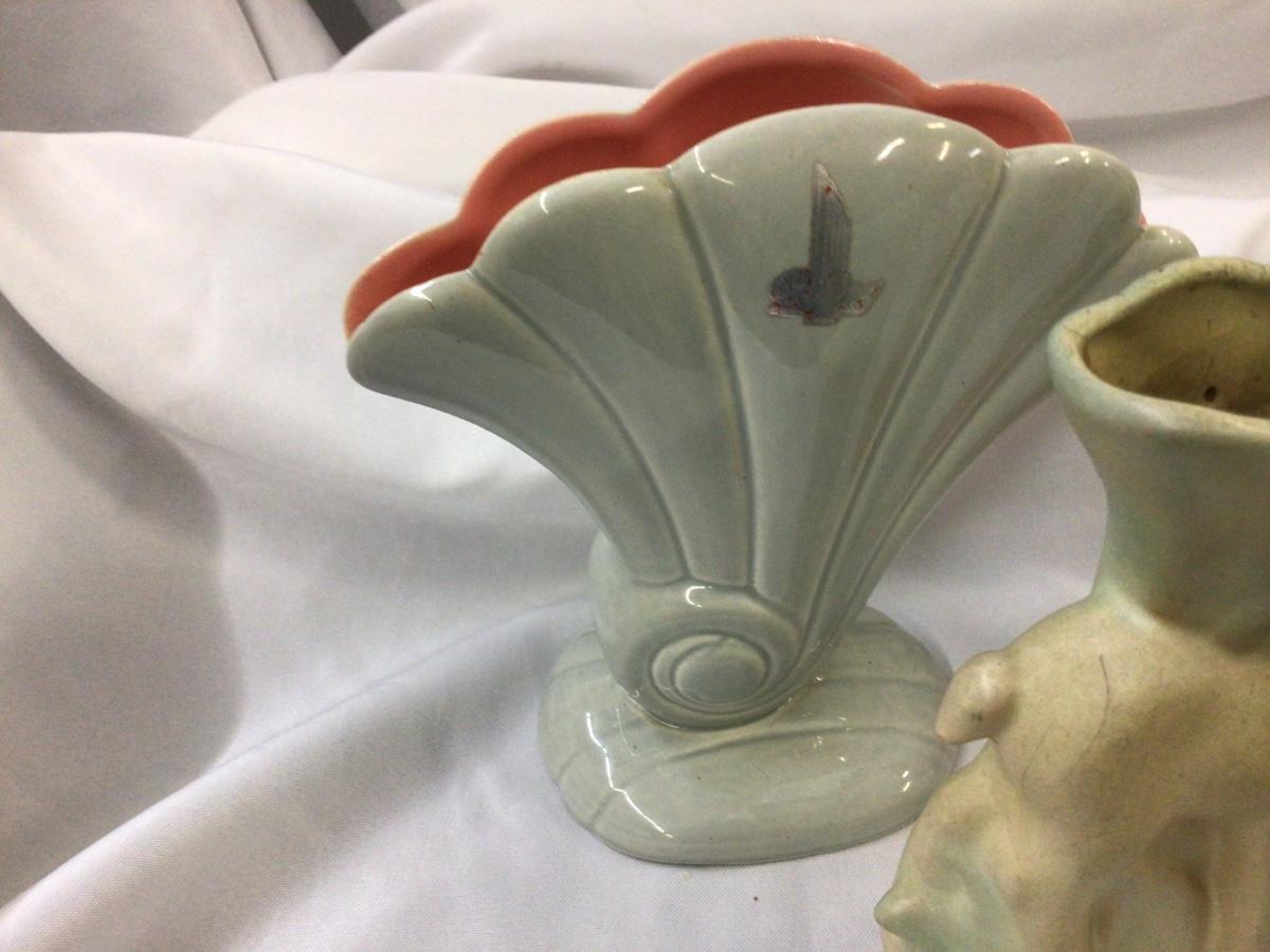 Rosemead Deer Vase, Red Wing Fan Vase, Hull Pitcher