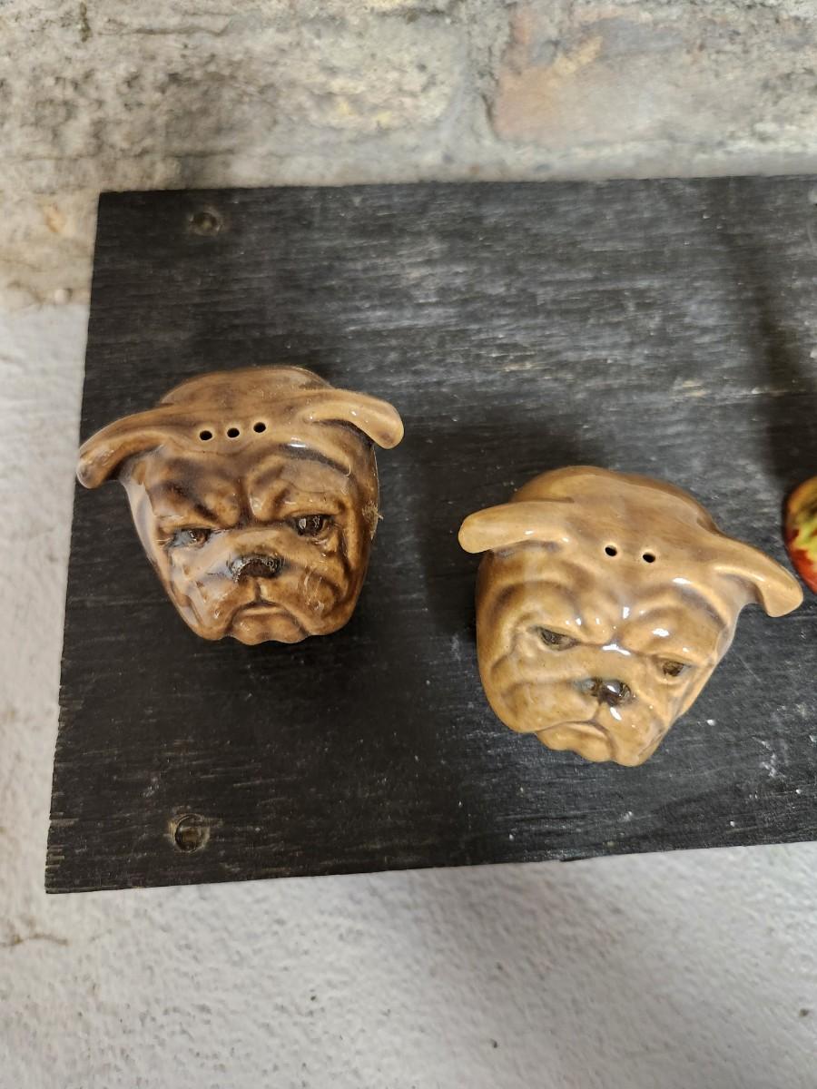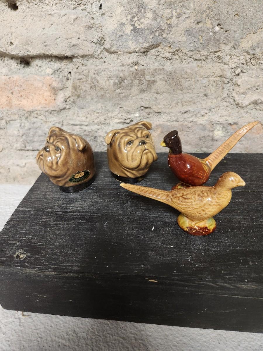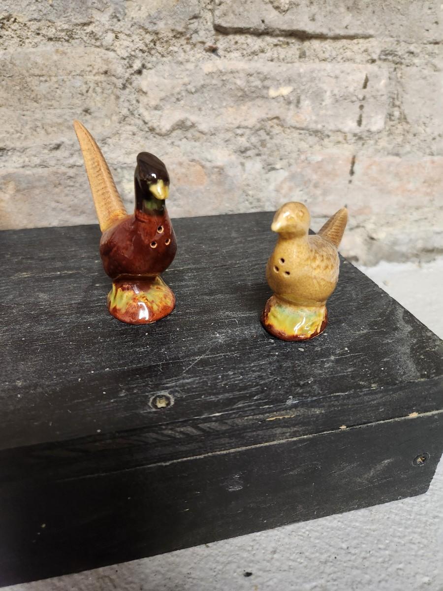 2 sets of Rosemeade shakers. The pheasants are in excellent condition with one male and one female. The dogs still have a tag and are awesome