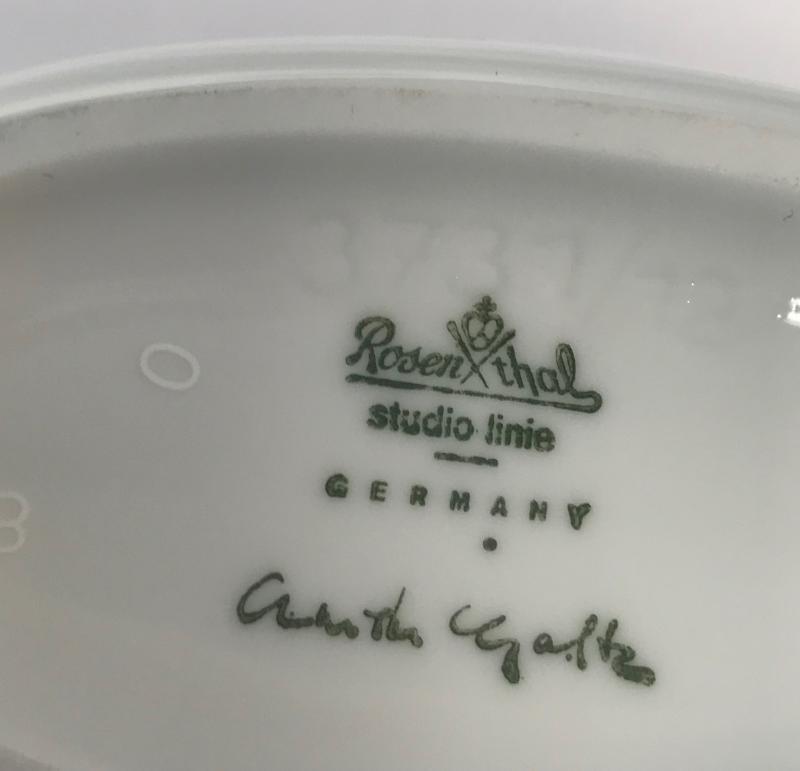 Description: Rosenthal stamped 8 "Studio-Linie" floral oval vase signed Arthur Galtz. Measurement approximate: 4.75 H X 3.75 W X 2.5 D. Material: Porcelain. Shipping cost: $15 Excluding California, Alaska & Hawaii.