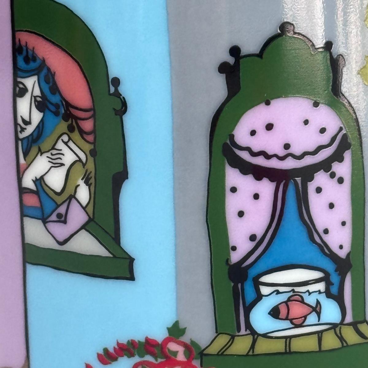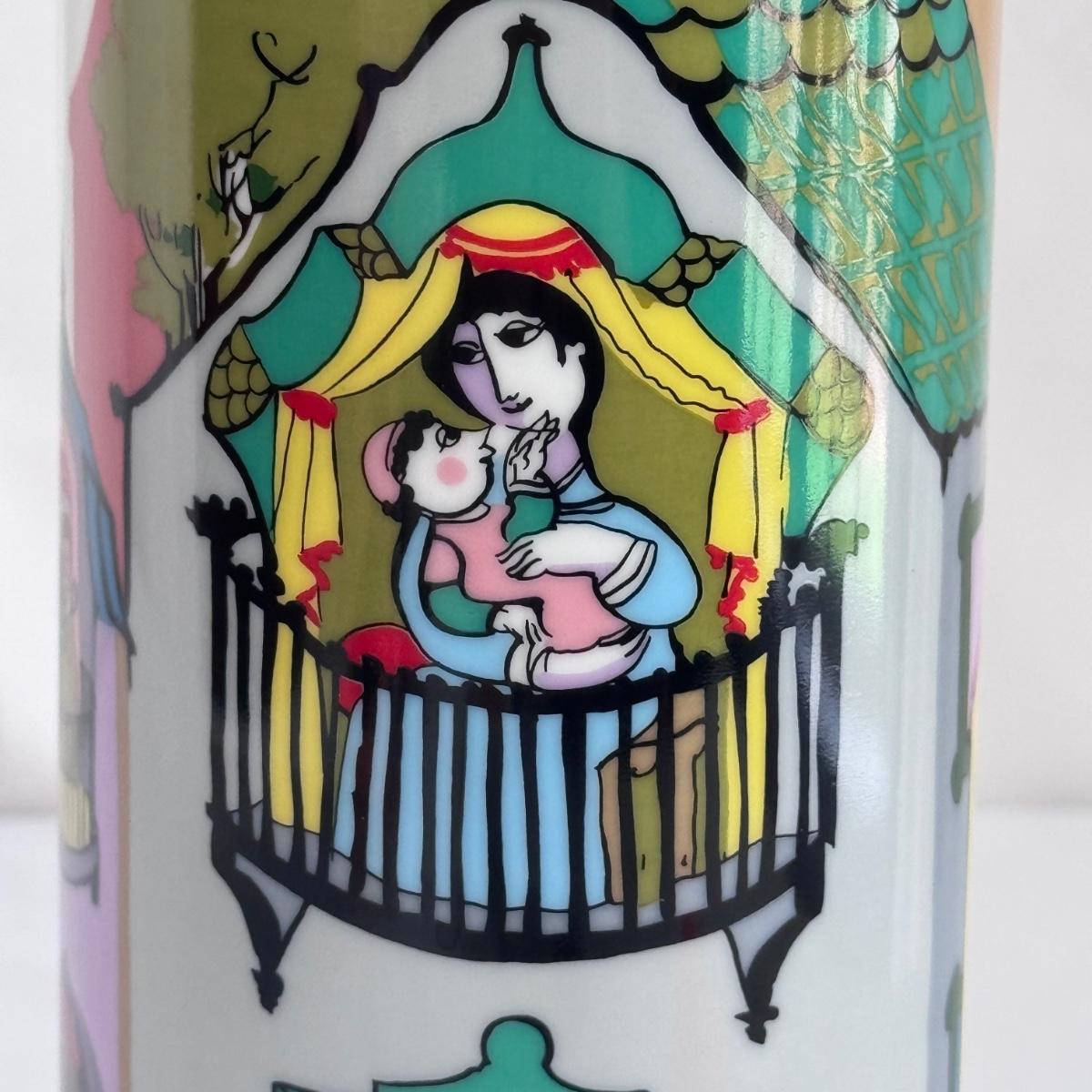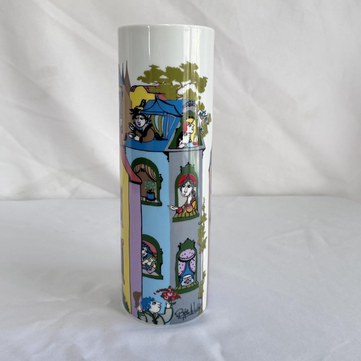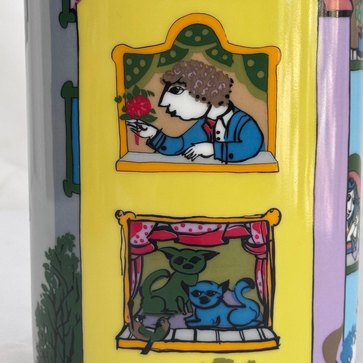This lot includes one Bjorn Wiinbland vase designed for Rosenthal. It appears to be made of porcelain with several window scenes painted on every side. The vase is signed - see picture included. The vase measures 5” x 3.5” x 11.5”H. Shipping available.