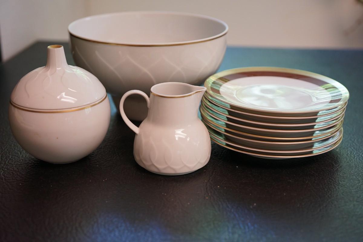 grouping of German porcelain Rosenthal. A mid century look. ivory color with impressed design.