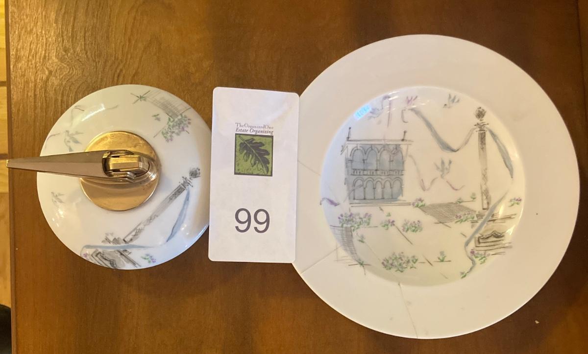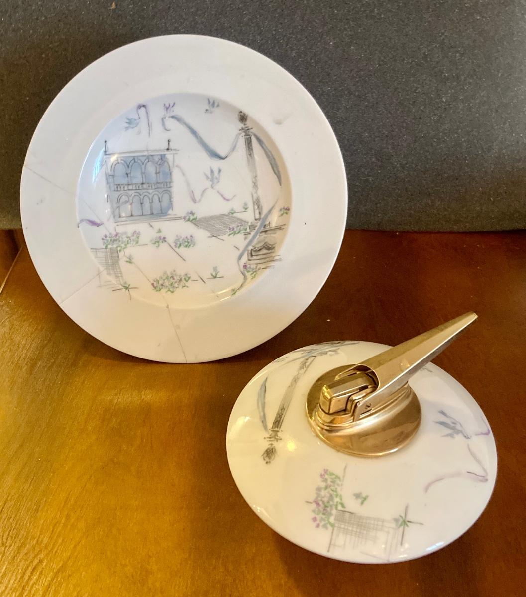 Vintage Signed Rosenthal matching Ronson lighter.with (repaired) pipe ash bowl.