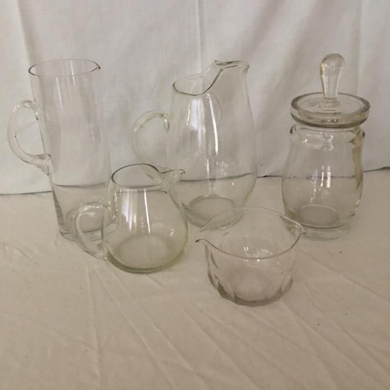 Classic Rosenthal pitcher with two pitchers, bowl and jar with top. Jar is heavy for its size. You will love having this Rosenthal pitcher in your collection and to use everyday. Rosenthal pitcher measures 3.5” D x 10.5” tall.