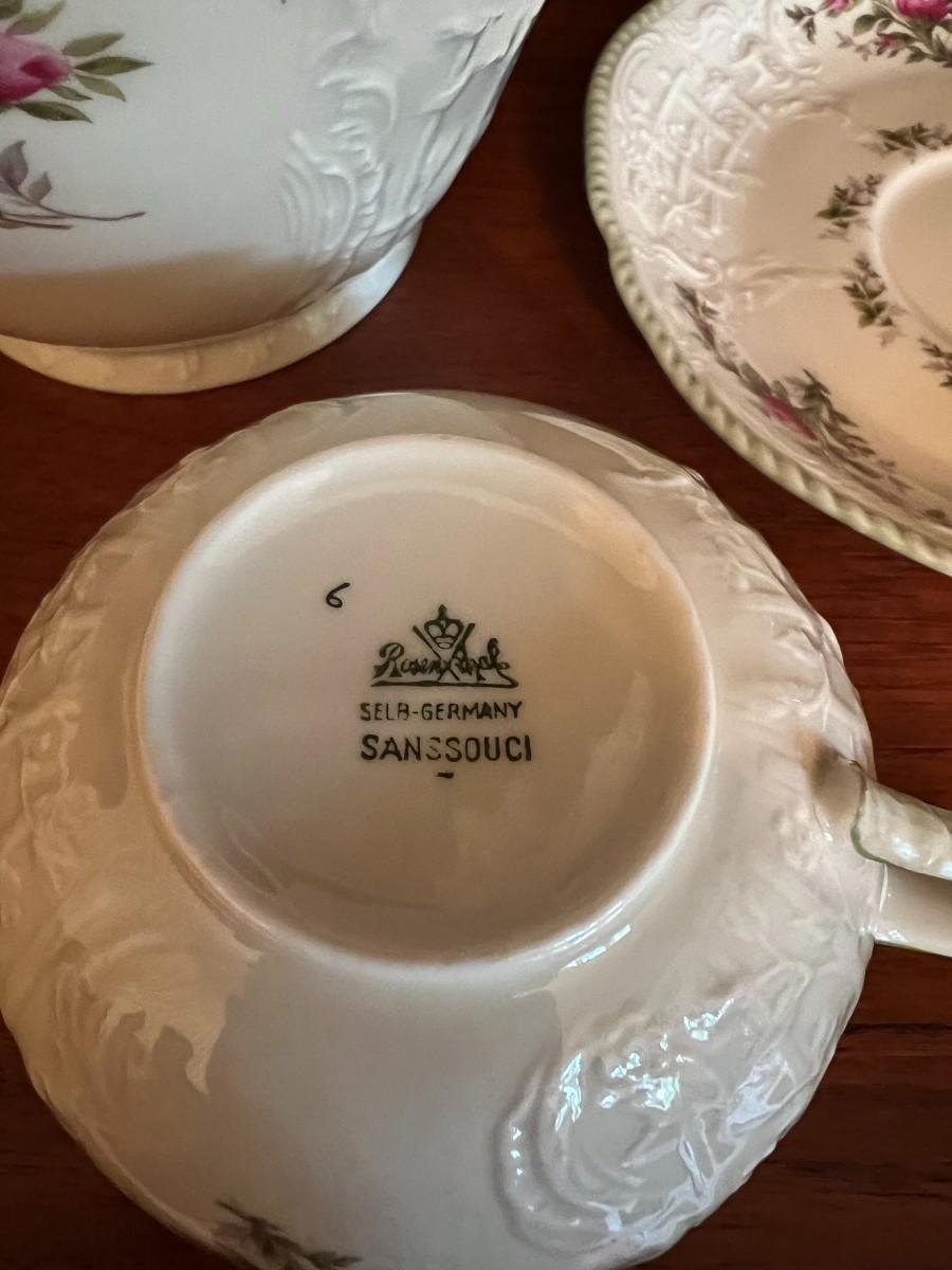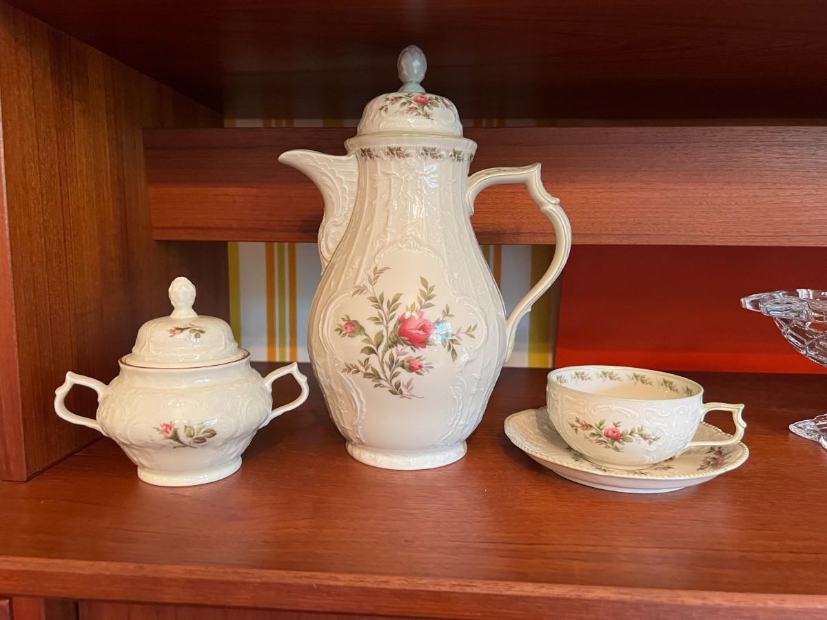 Rosenthal Sanssouci Rose Ivory (Gold Trim) Coffee Pot & Lid, Sugar Bowl, and Cup & Saucer