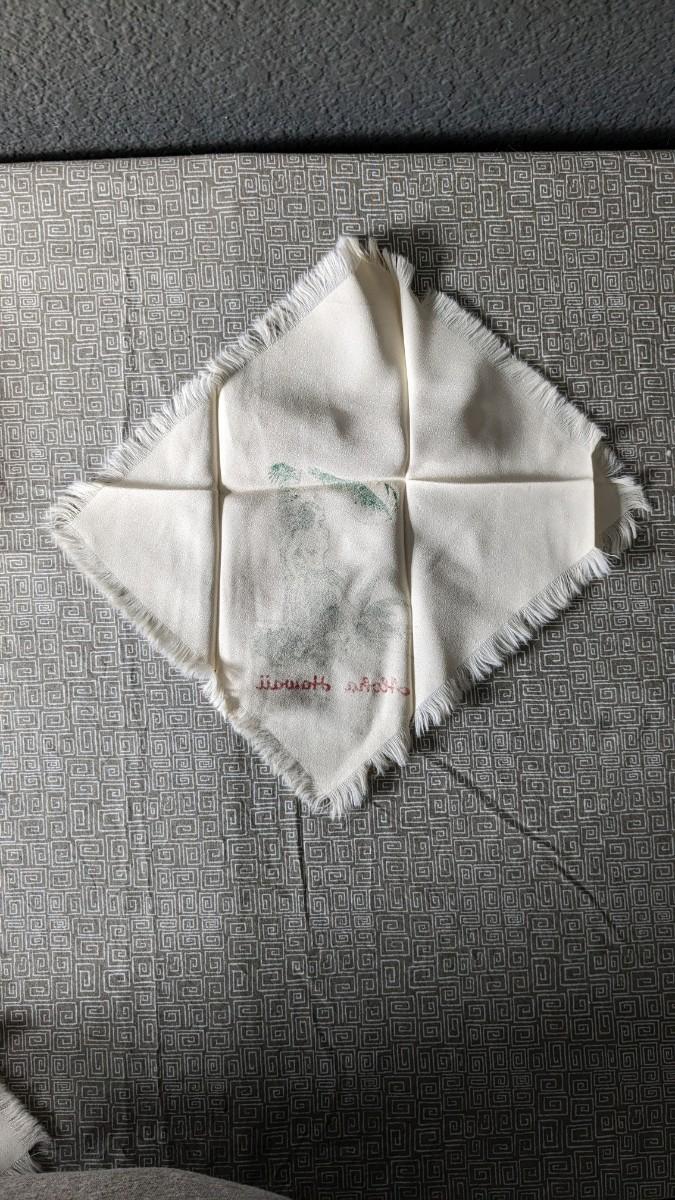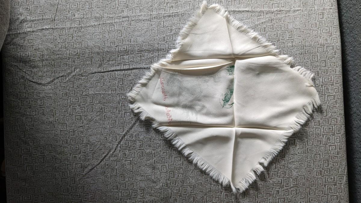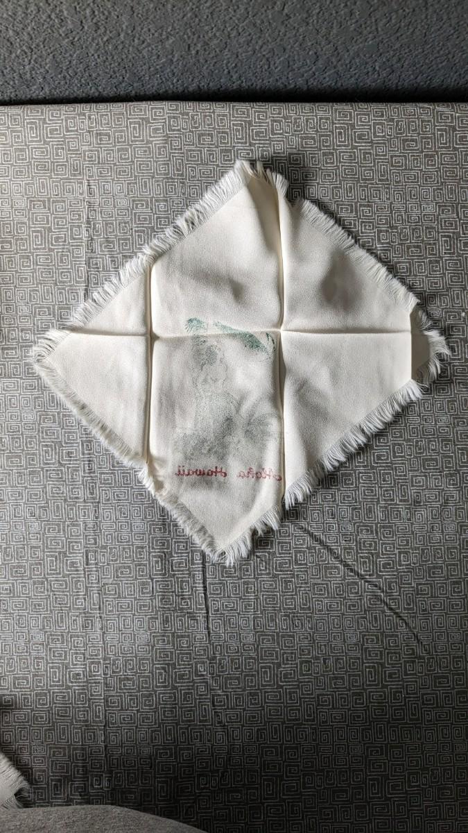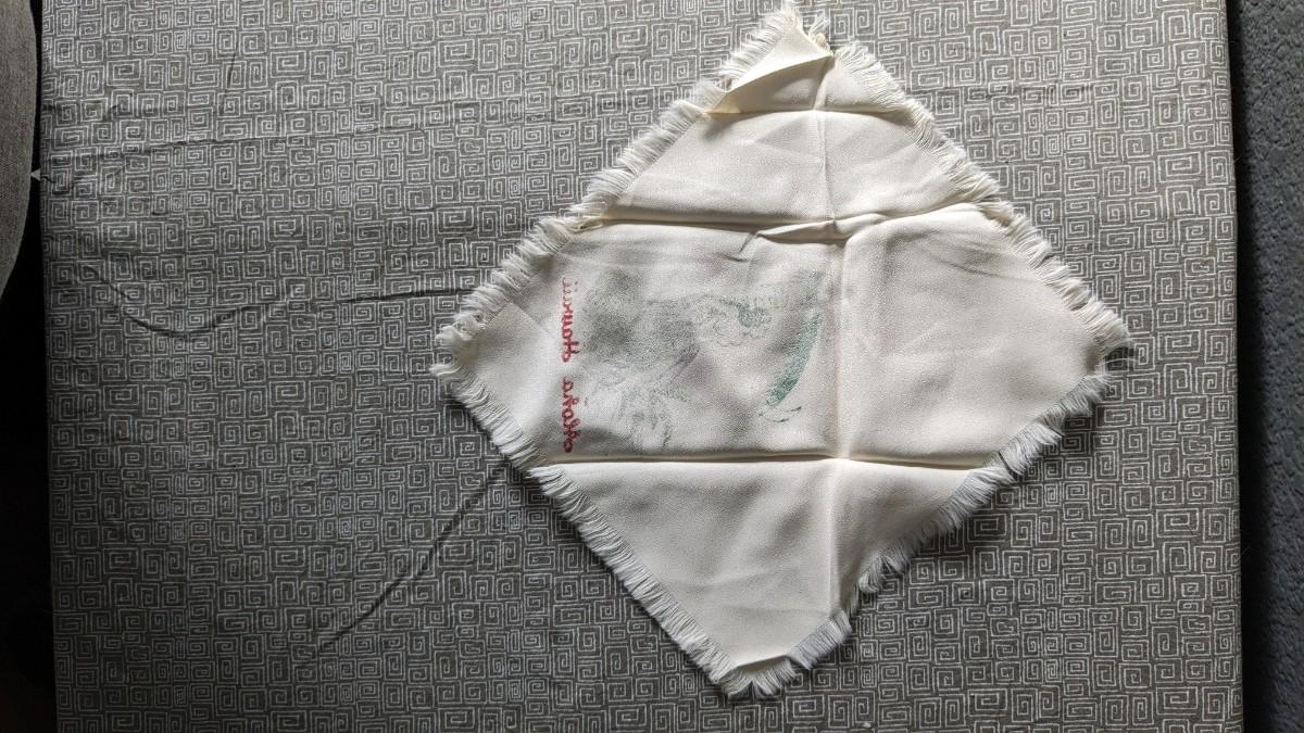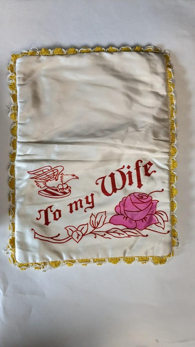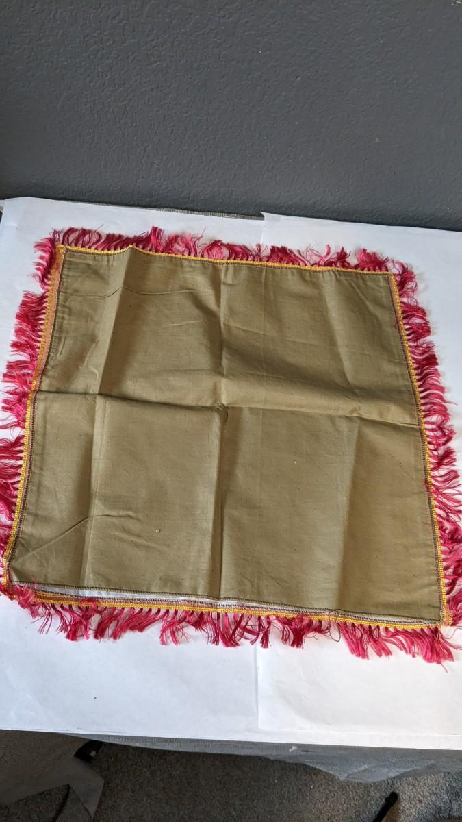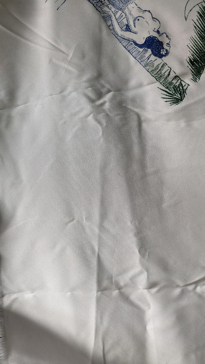 4 beautiful multi size satin/poly WW2 era pillowcases. 2 from Camp Adair in Oregon and one from Ft. Campbell Kentucky, the final is unmarked. Each are stunning and in excellent condition. Also includes an incredible matched set of silk screen on acetate Hawaiian hula girl tablecloth and napkins. This beautiful set has a lovely cream color to linen, frayed edges and matched silk screens. Napkins are a stunning tricolor with green at the top of the tree going into blue with the striking red "Aloha Hawaii" at the base. The four corners of the tablecloth have the same design and detail with Hawaiian specifics in the center in blue. One small pull is located in the center image, please see in photos, as well as one pen point spot. There is almost non-existent image seeping and no holes, tears, or other major damage found. This is an incredible set of linens that are very hard to find complete and in this condition! Don't miss out!