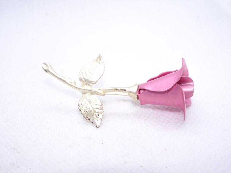 Roses are Girls Best Friend, Pink & Silver Tone Rose Brooch