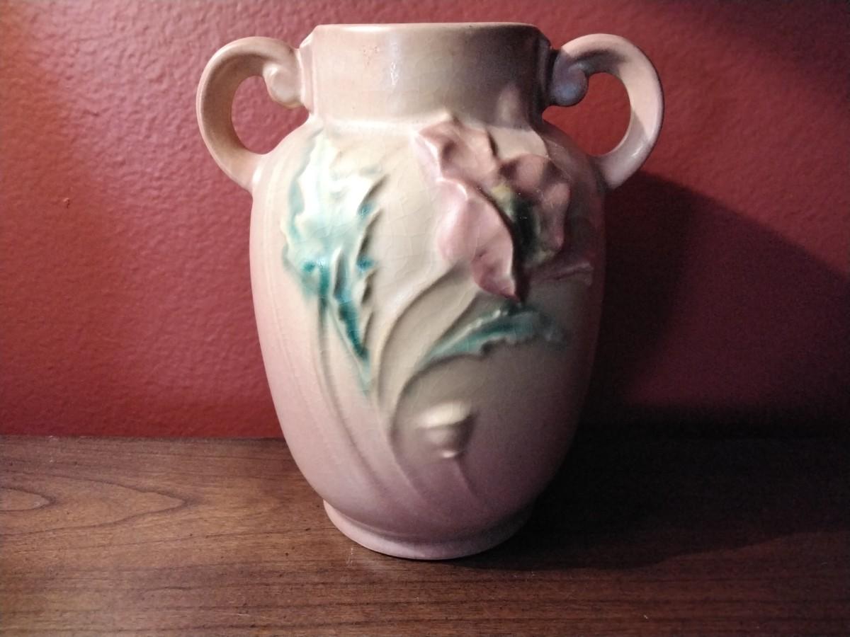 Roseville 1938 Poppy Pink Art Deco Vase 867-6
