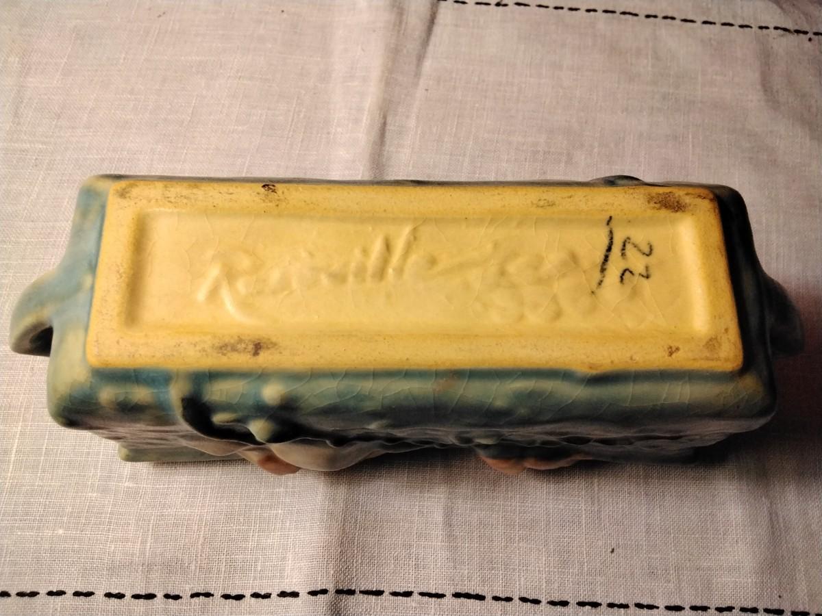 Absolutely gorgeous Roseville piece that was kept in a glassed display case. No chips, cracks nor repairs. 7" long by 3" deep, 3" wide.