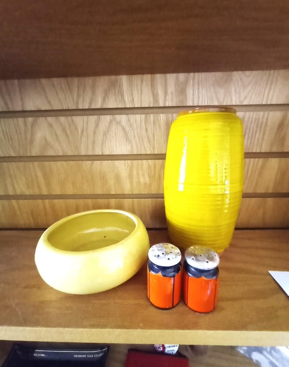 ROSEVILLE 5" ROUND-HAGGER VASE 9" TALL AND SALT & PEPPER SHAKERS