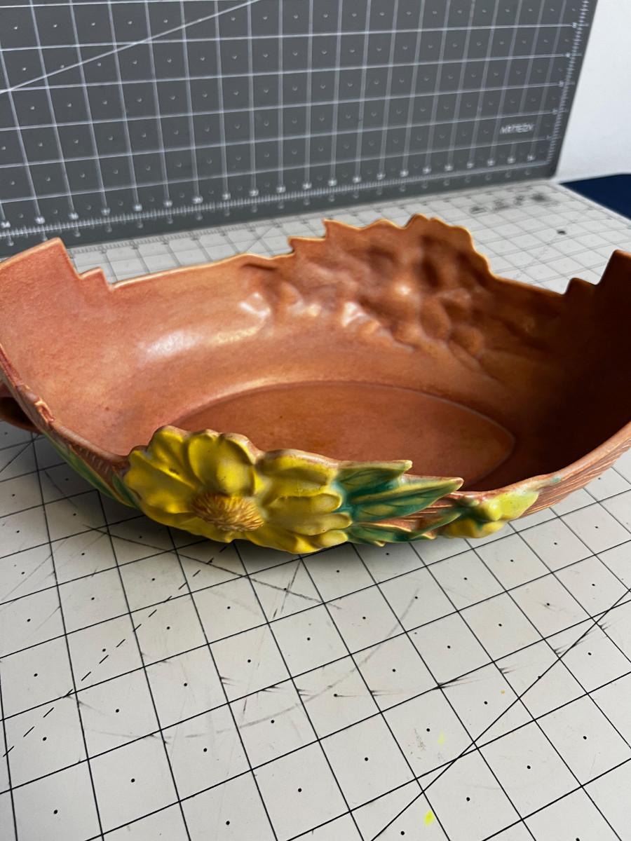 Roseville Centerpiece Bowl Pink with a Sunflower