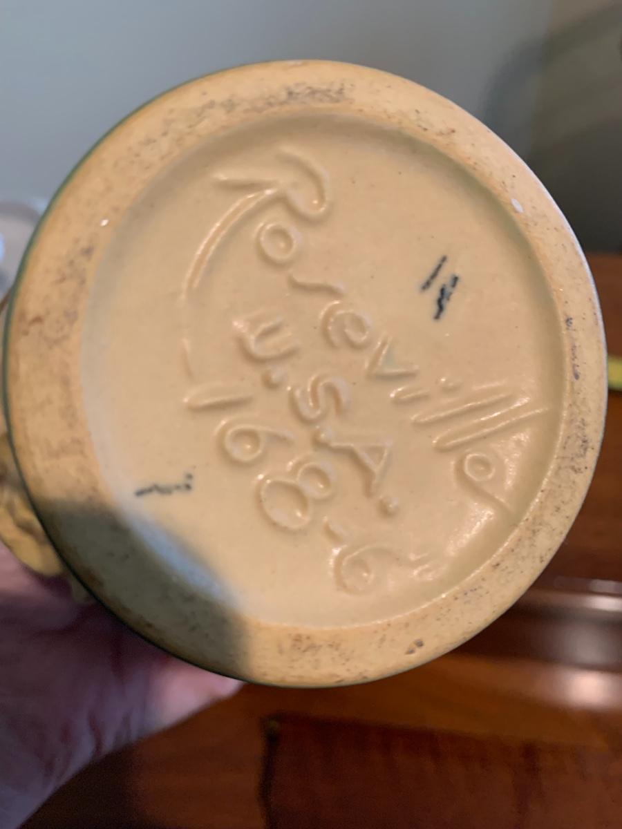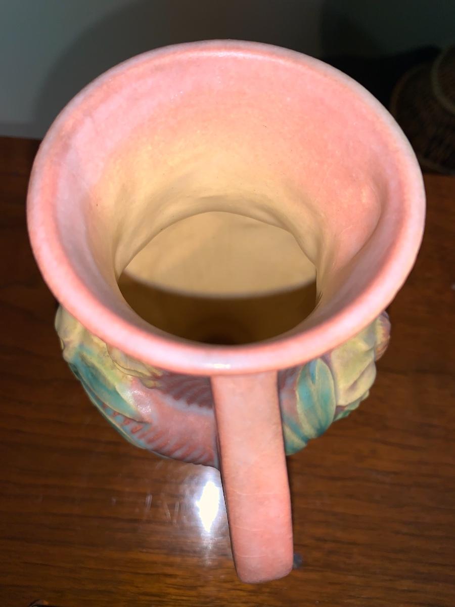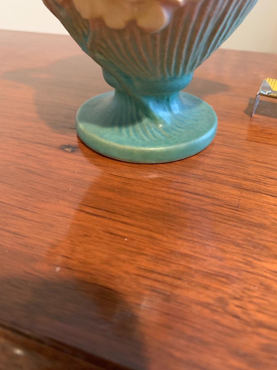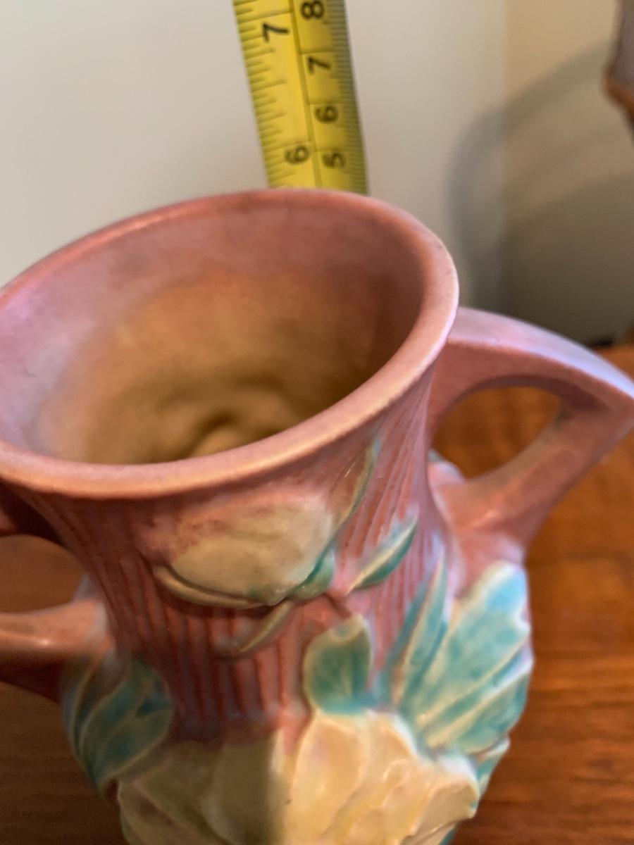 Roseville 6" Footed 2 handle Vase Peony Coral, no signs of damage.