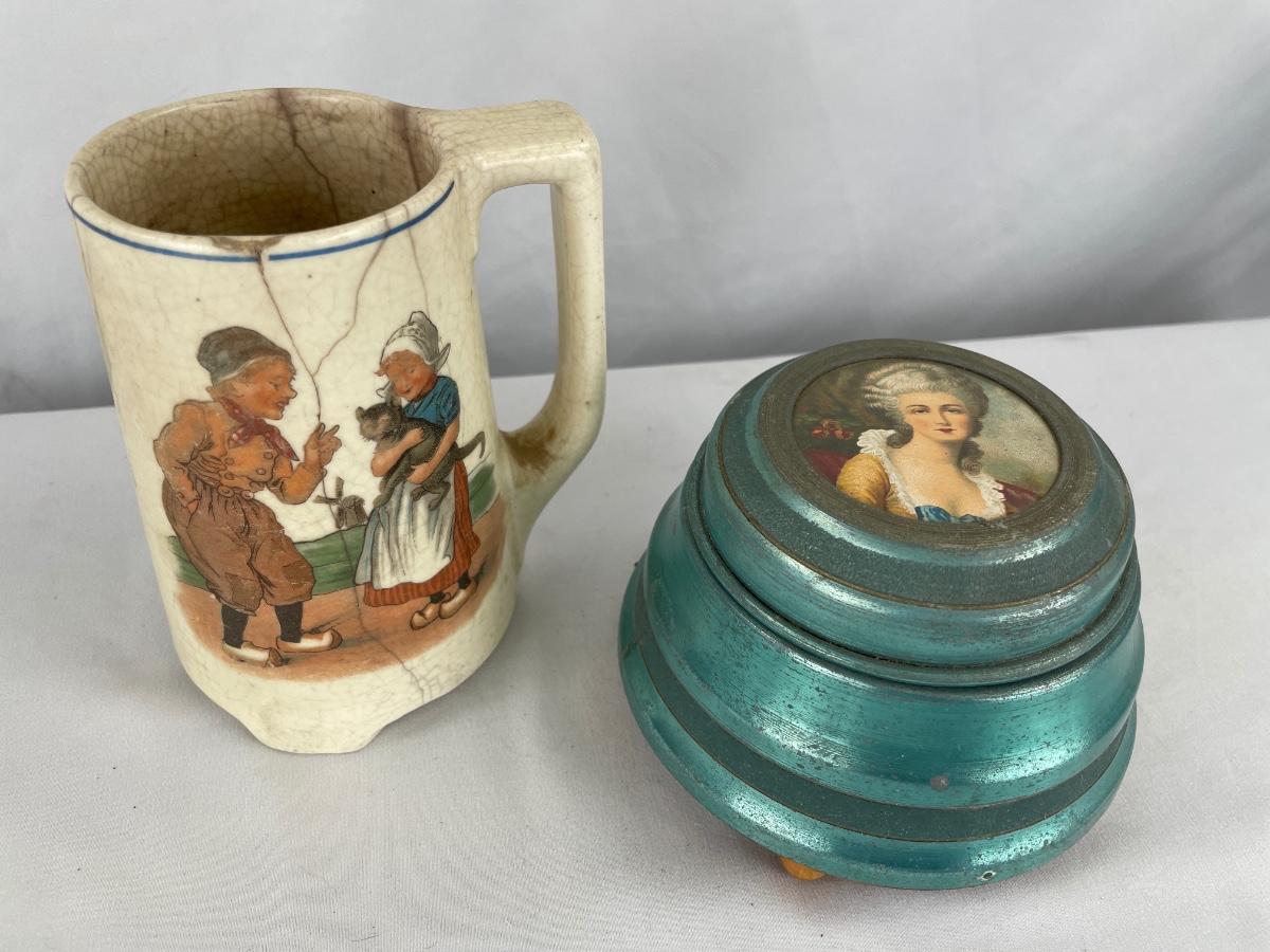 Roseville mug & music box powder trinket box