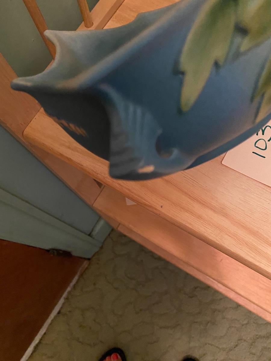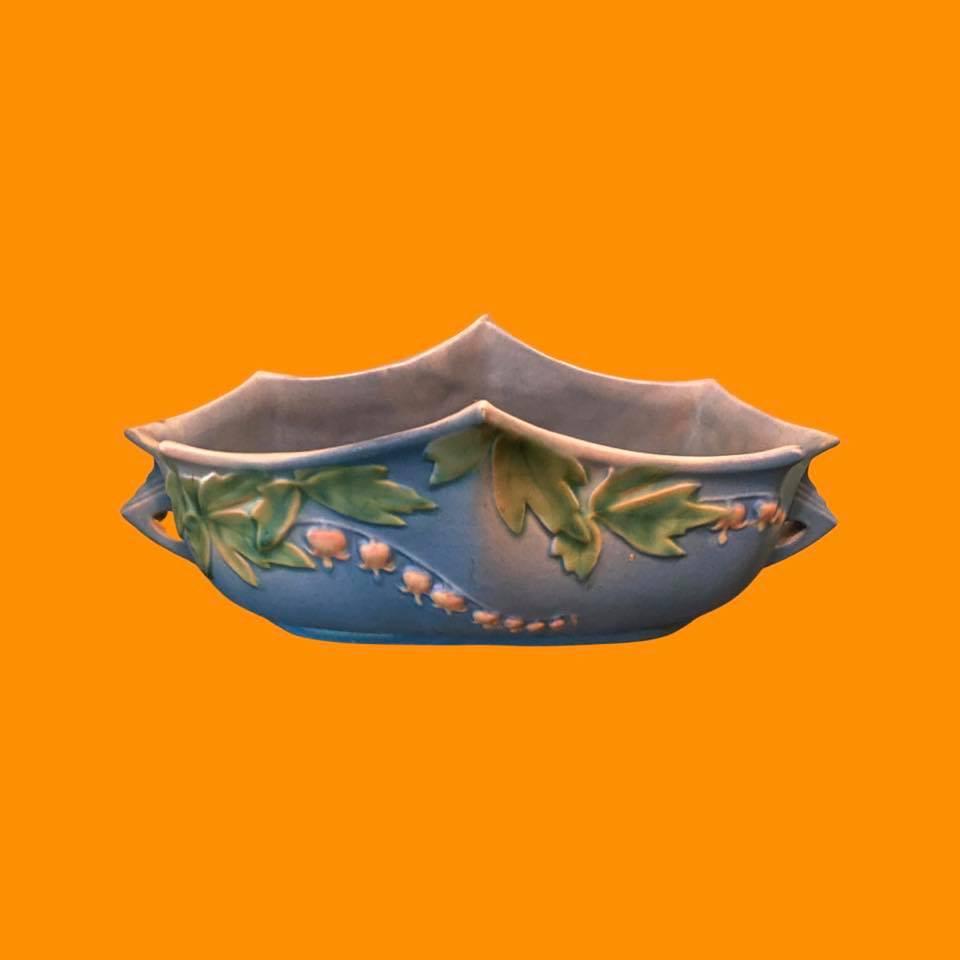LOT 101 Roseville blue bleeding Heart planter sm chip on handle
