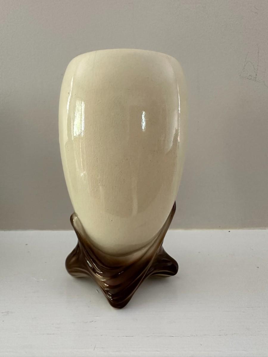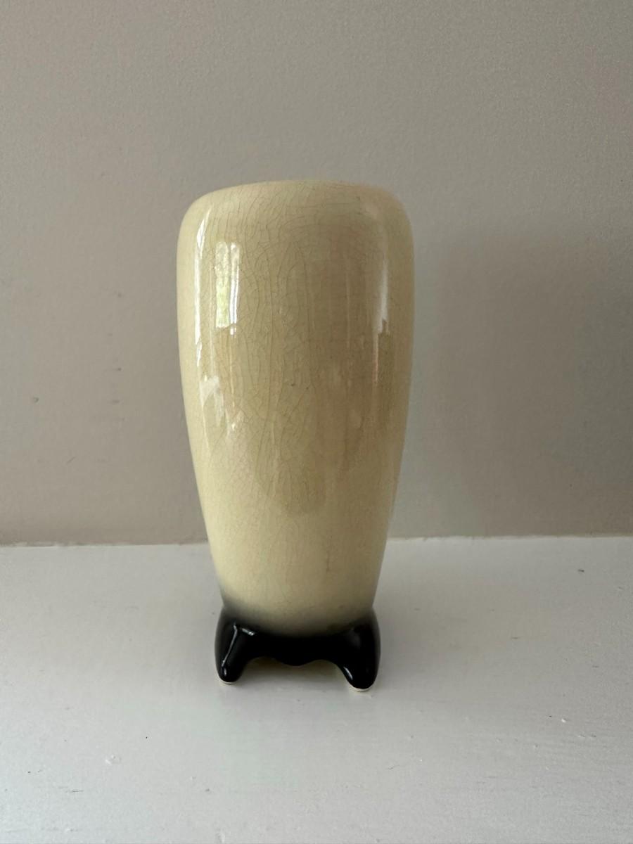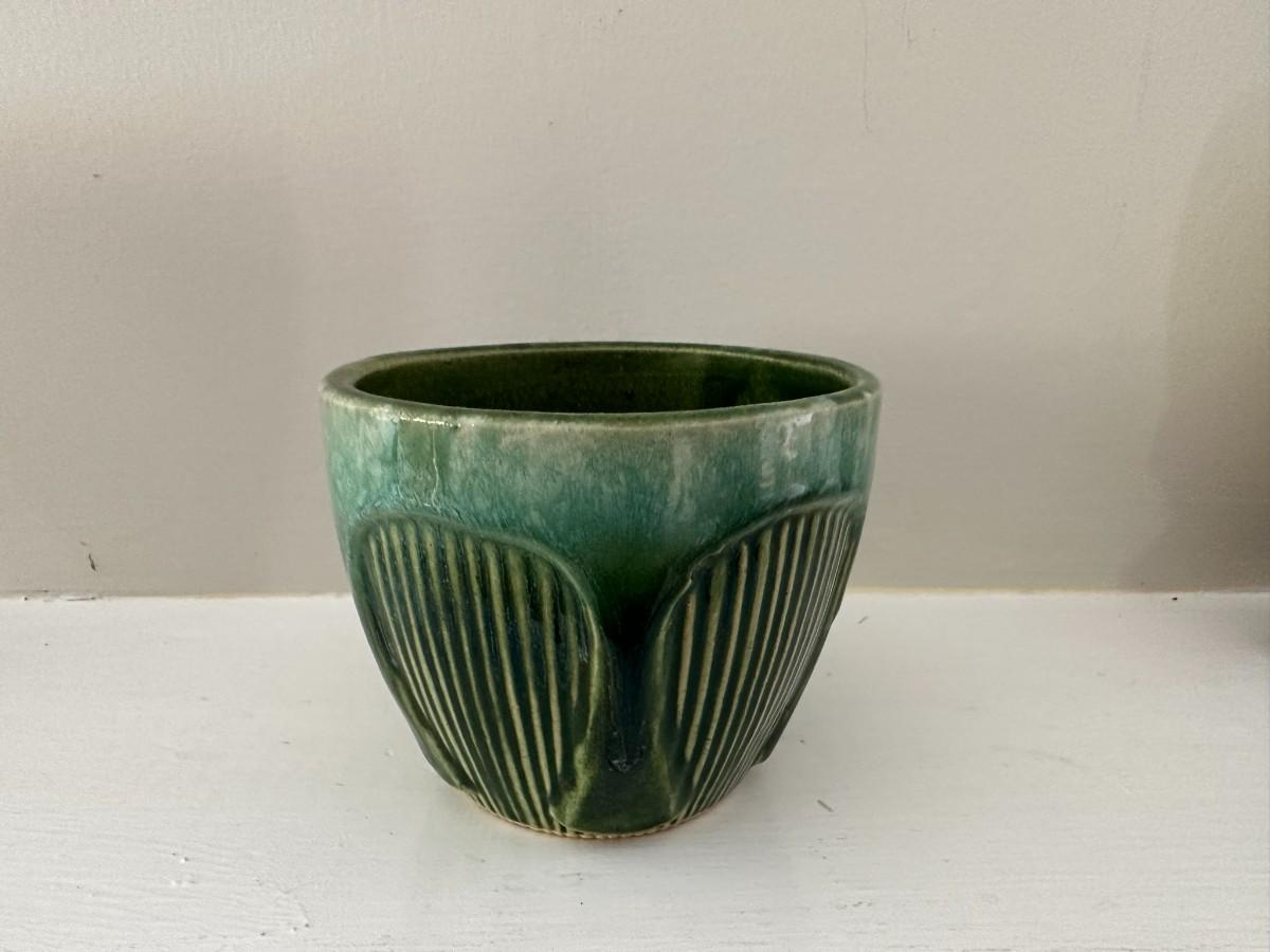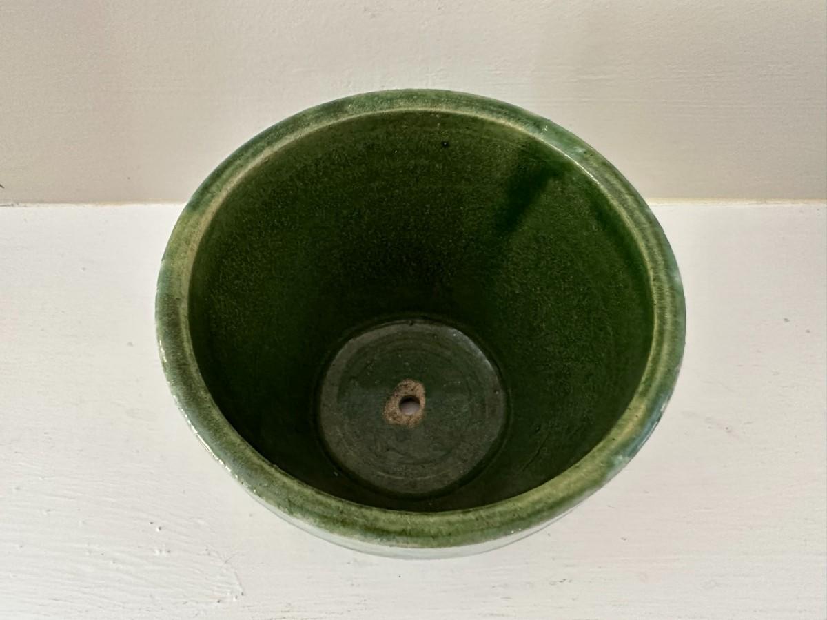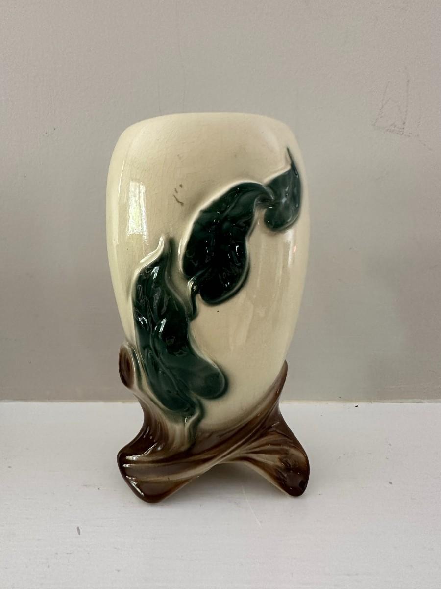 5"w x 4"h Green Roseville Pot. 5"h Green Vase - USA 835. 2 Ivory/Green Vases - 7.25"h and 7"h.