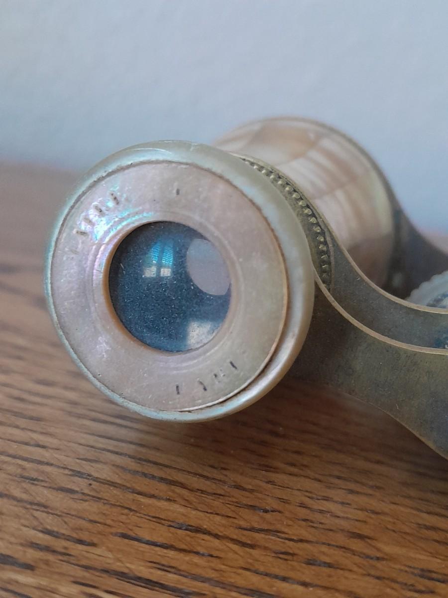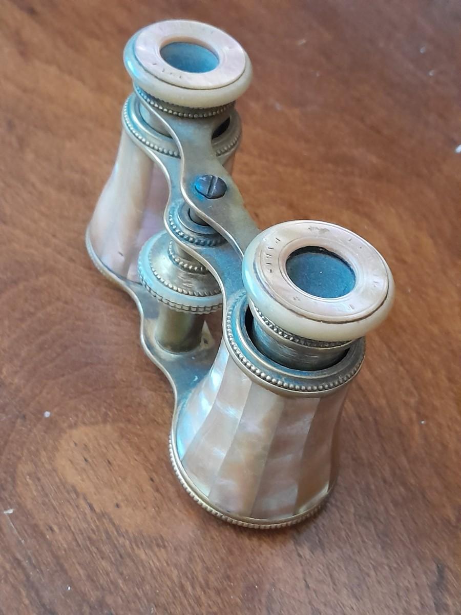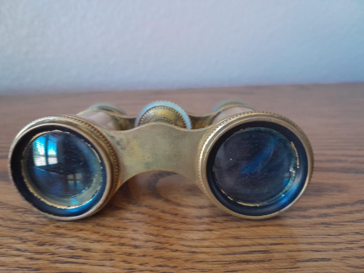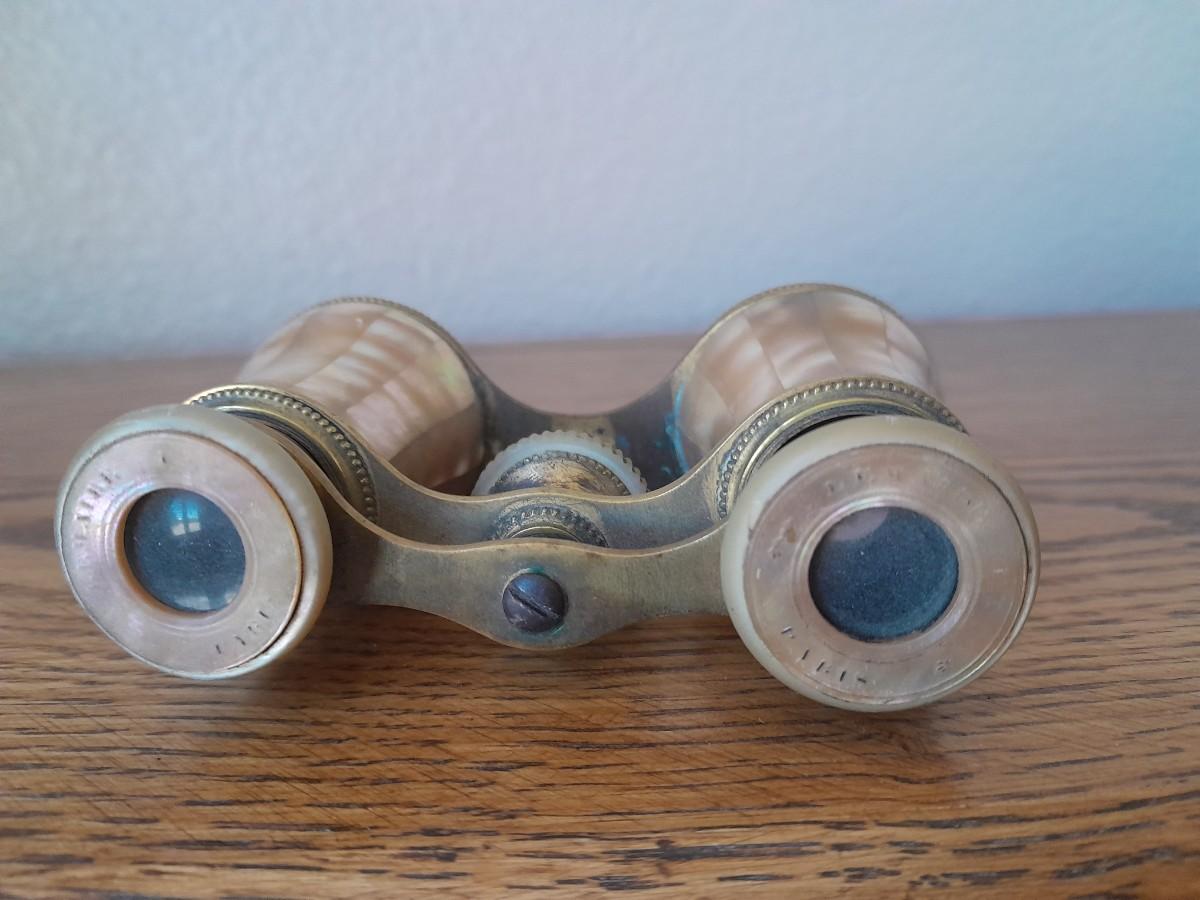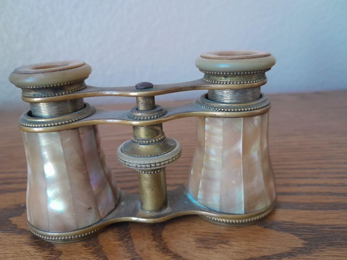 ROSEVILLE POTTERY AND MOTHER OF PEARL OPERA GLASSES WITH CASE